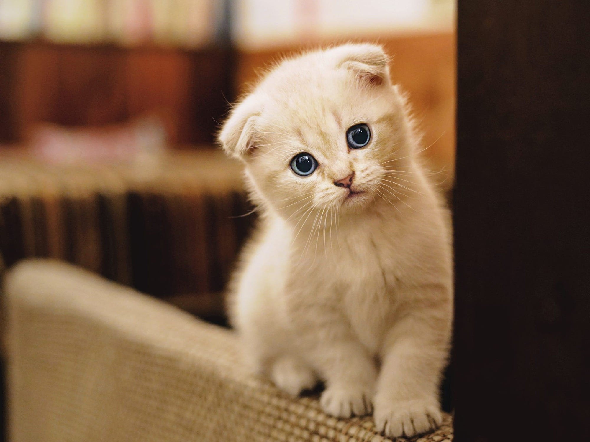 Белый шотландский вислоухий котенок
