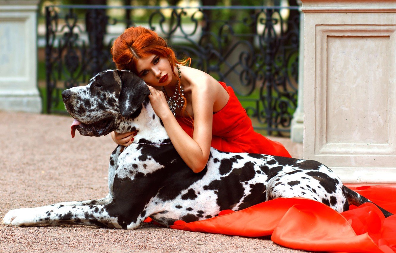 Собака дог и девушка