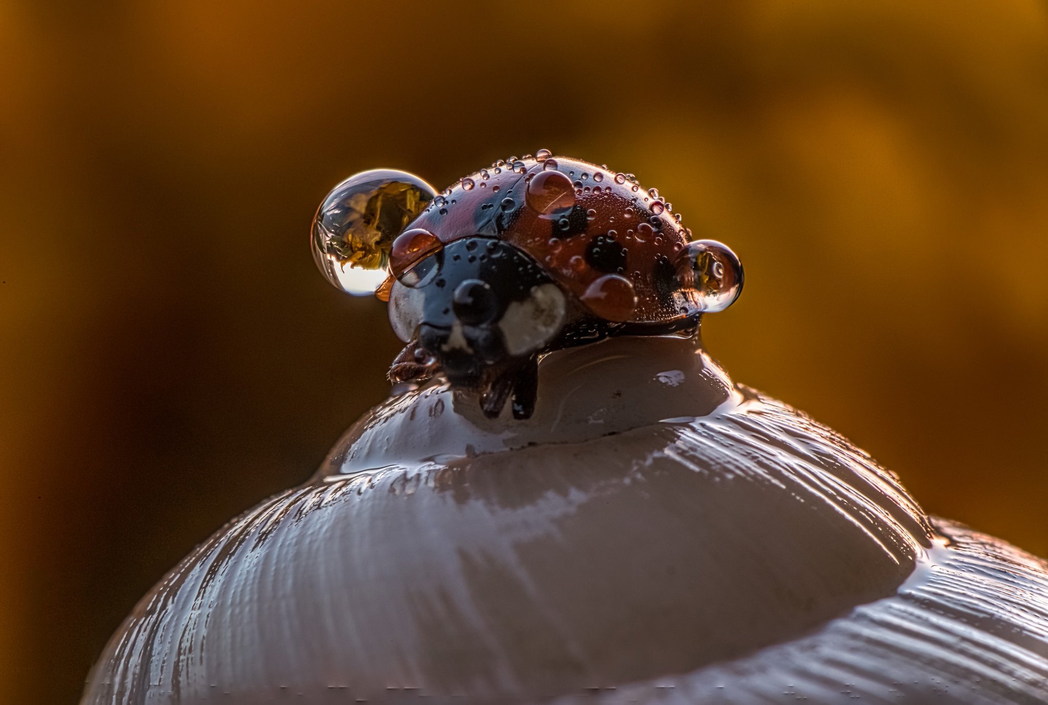 Жёлтая Божья коровка с чёрными пятнами