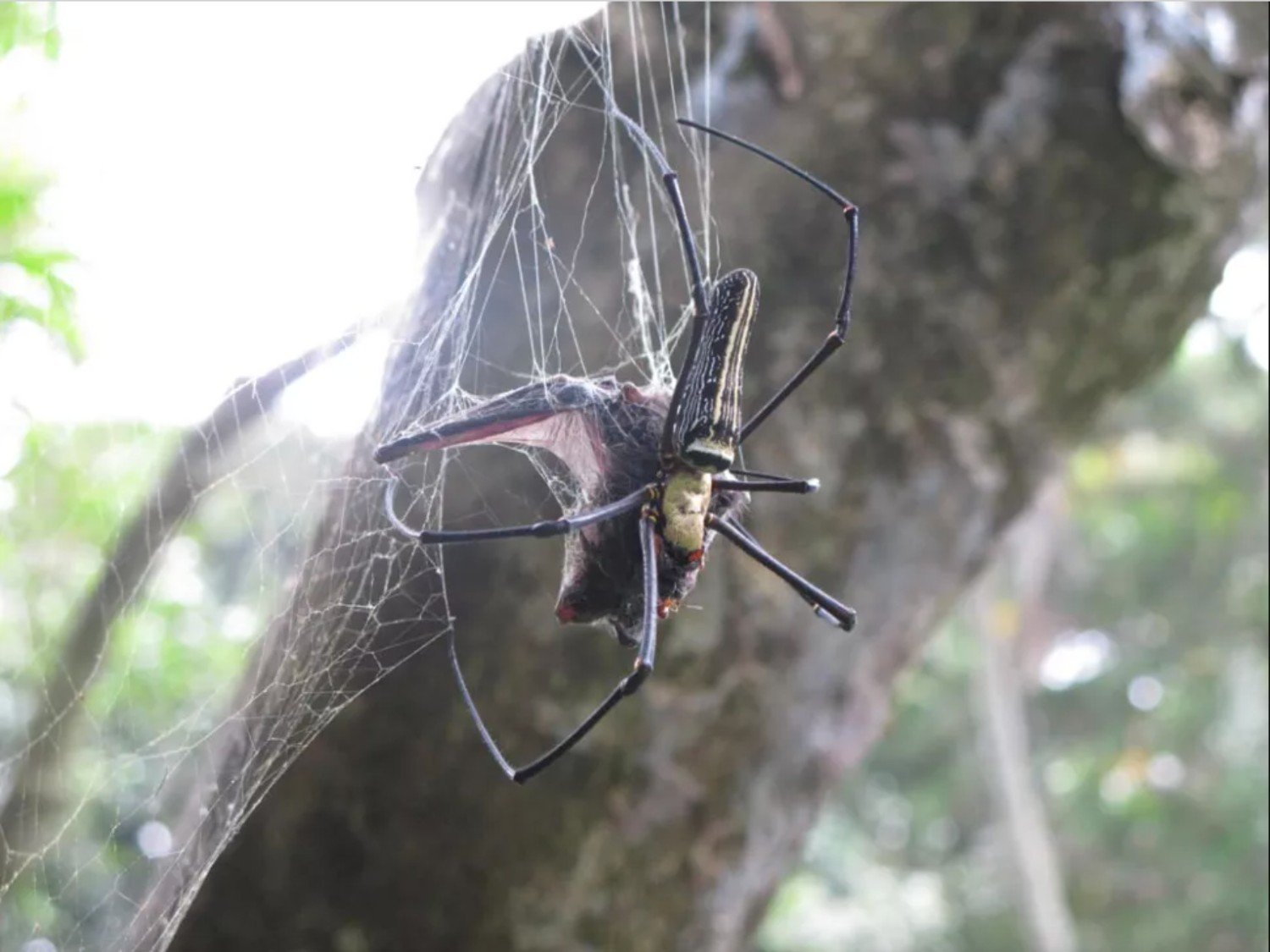 Паук ест летучую мышь
