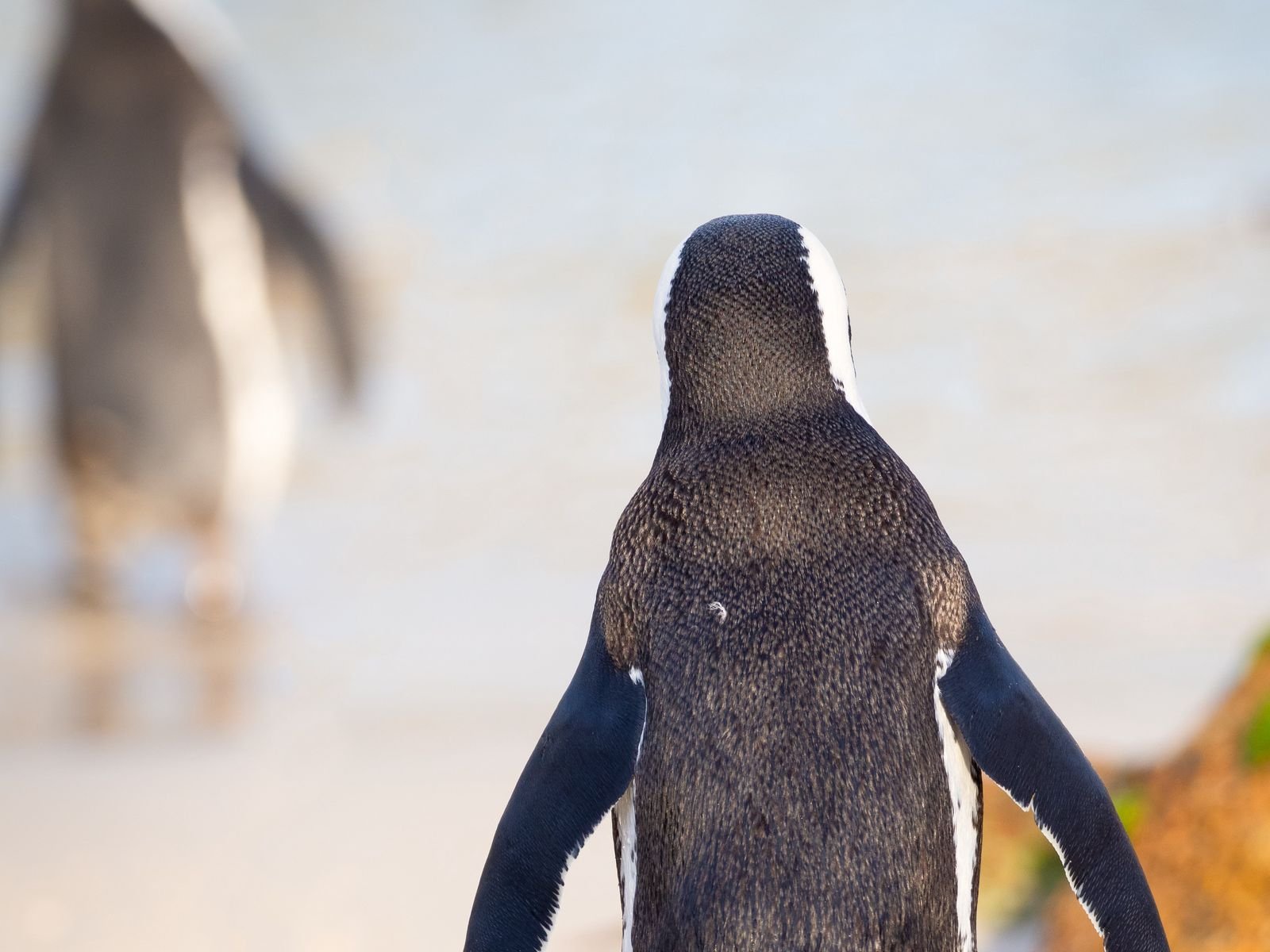 Пингвин на пляже мокрый