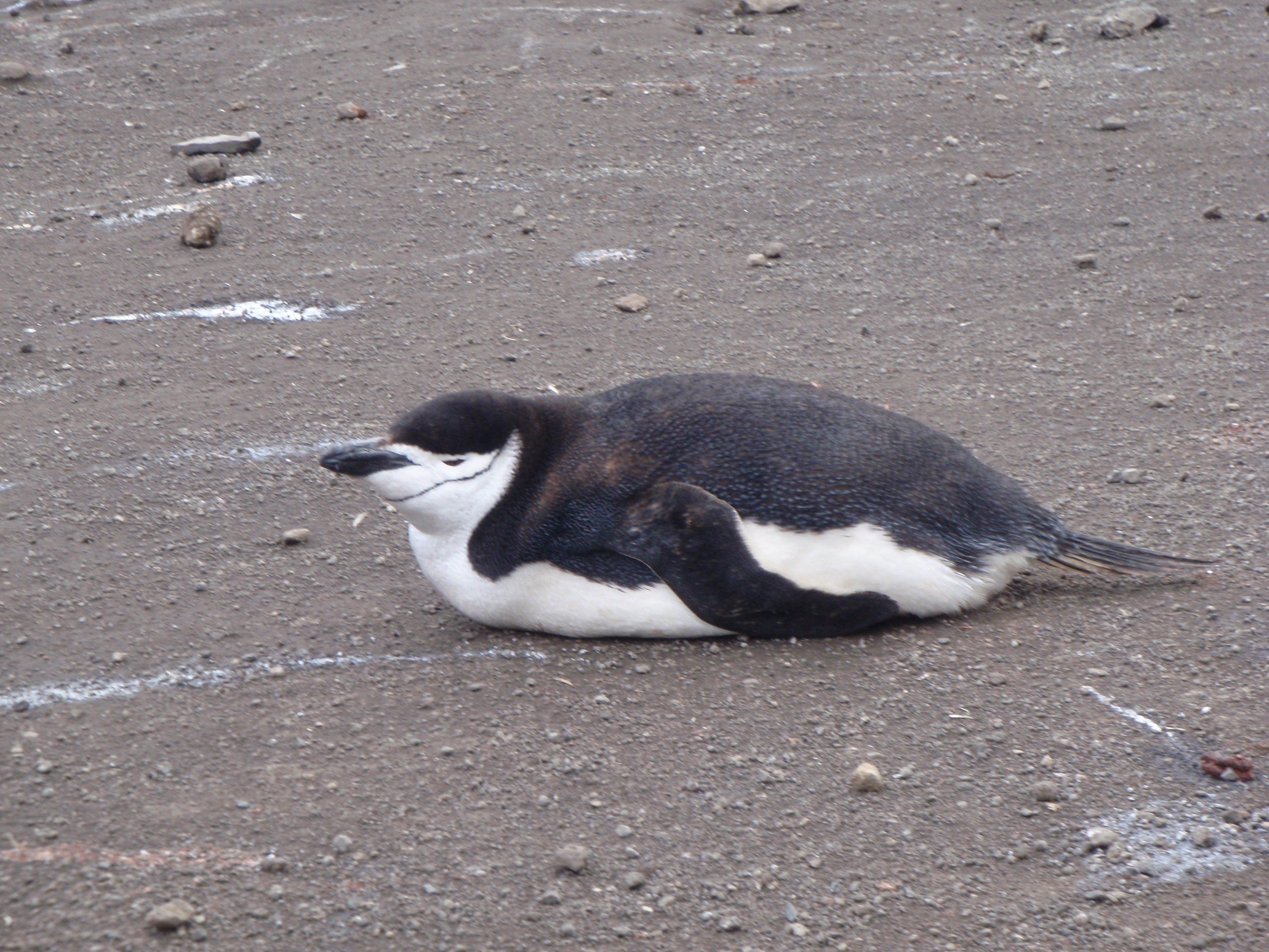 Пингвин лежит