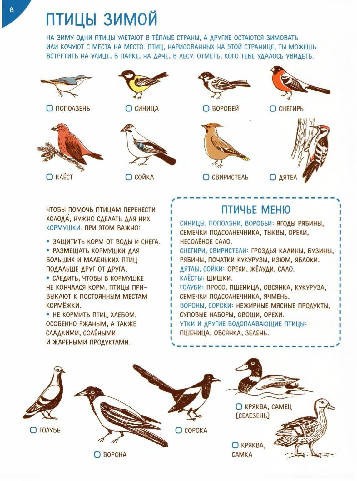Список зимующих птиц России для детей