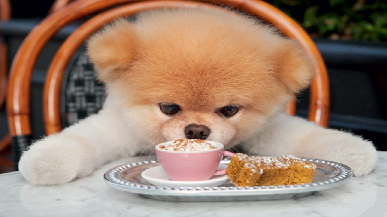 Померанский шпиц кушает
