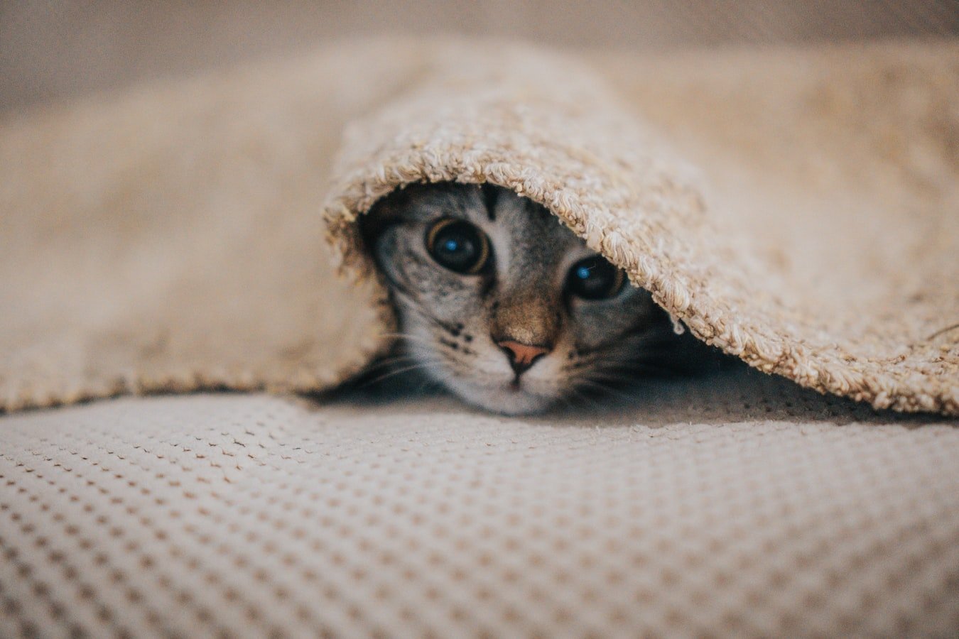 Котенок под одеялом спрятался