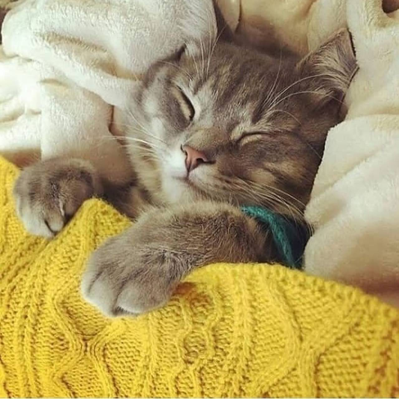 Спящий котик с надписью