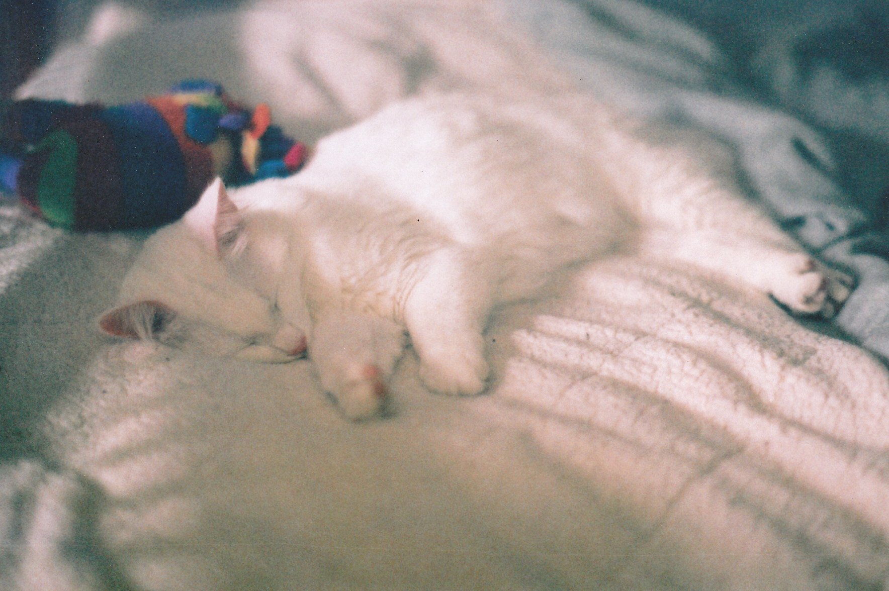 Белый котик в одеяле