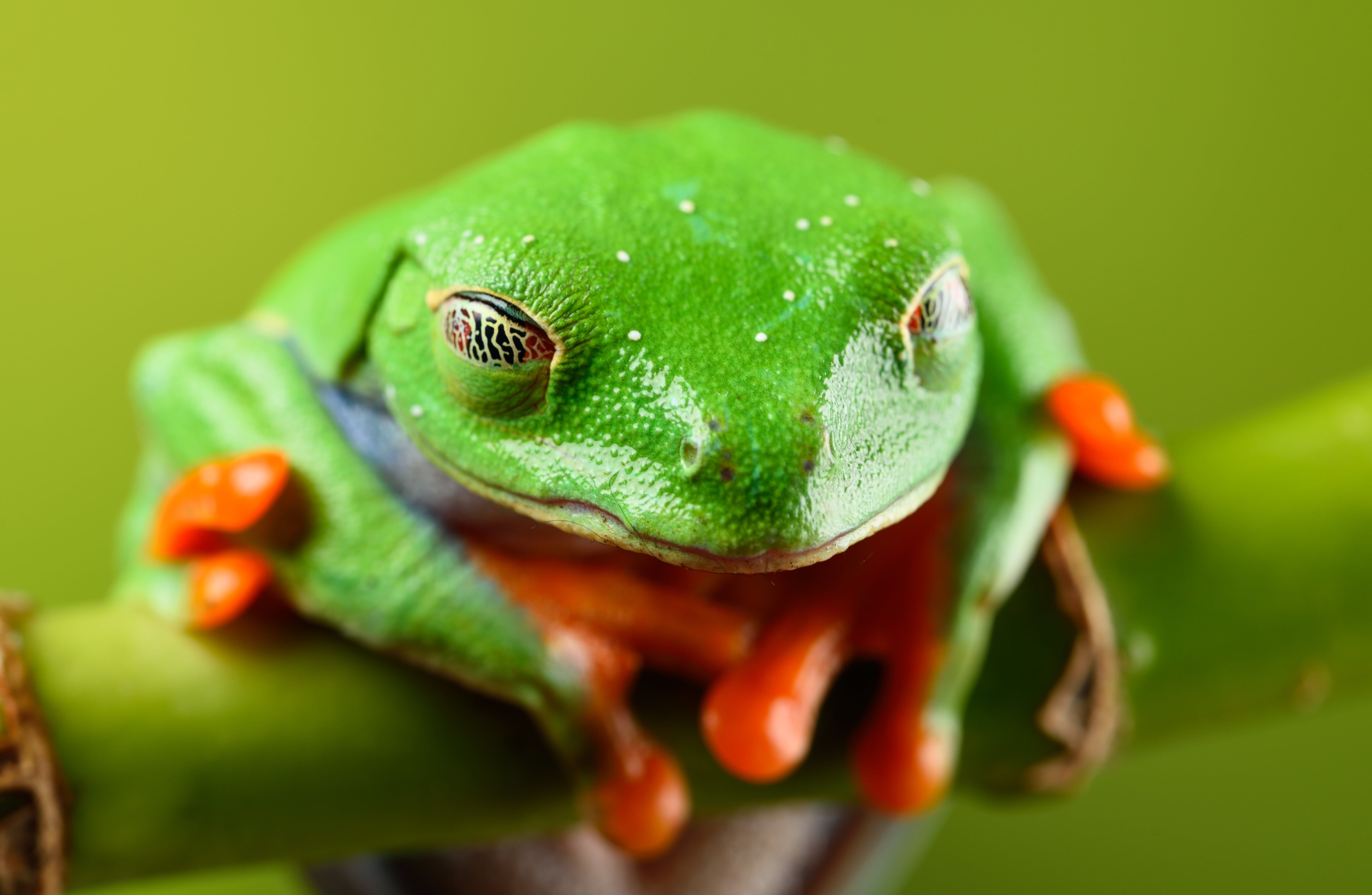 Лягушка ярко зеленого цвета