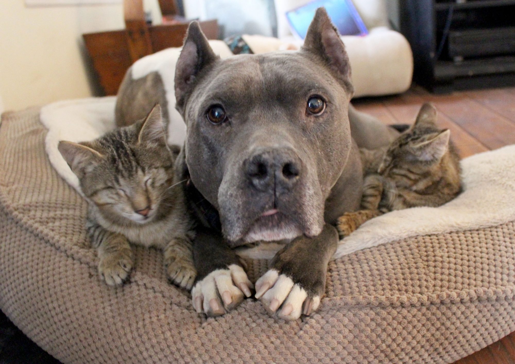 Стаффордширский терьер и кот