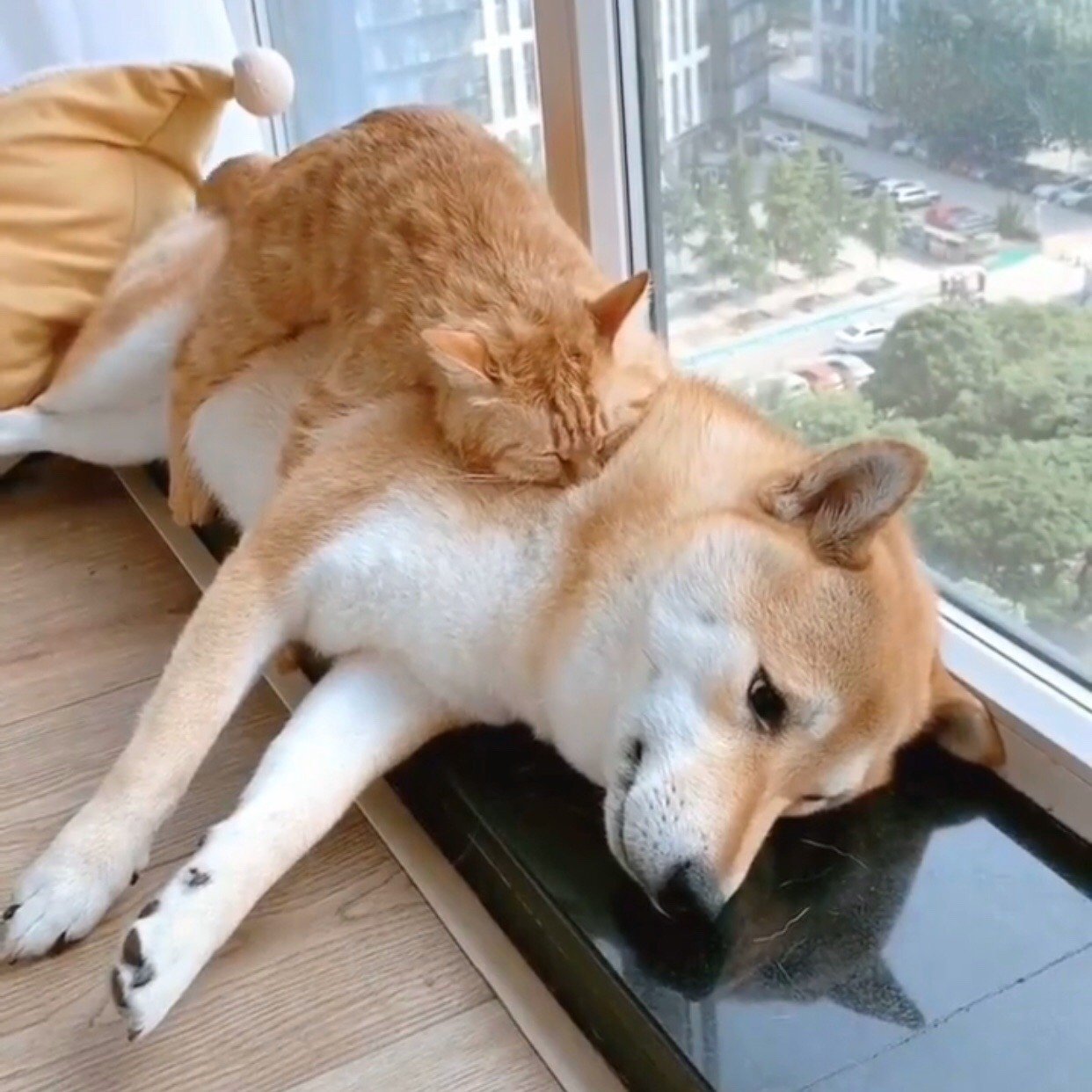 Сиба ину и рыжий кот