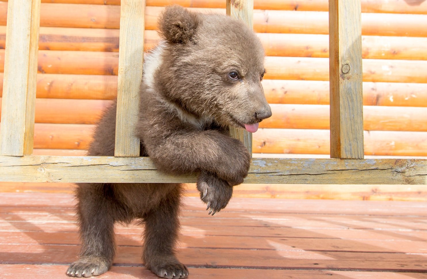 Медвежонок на бревне