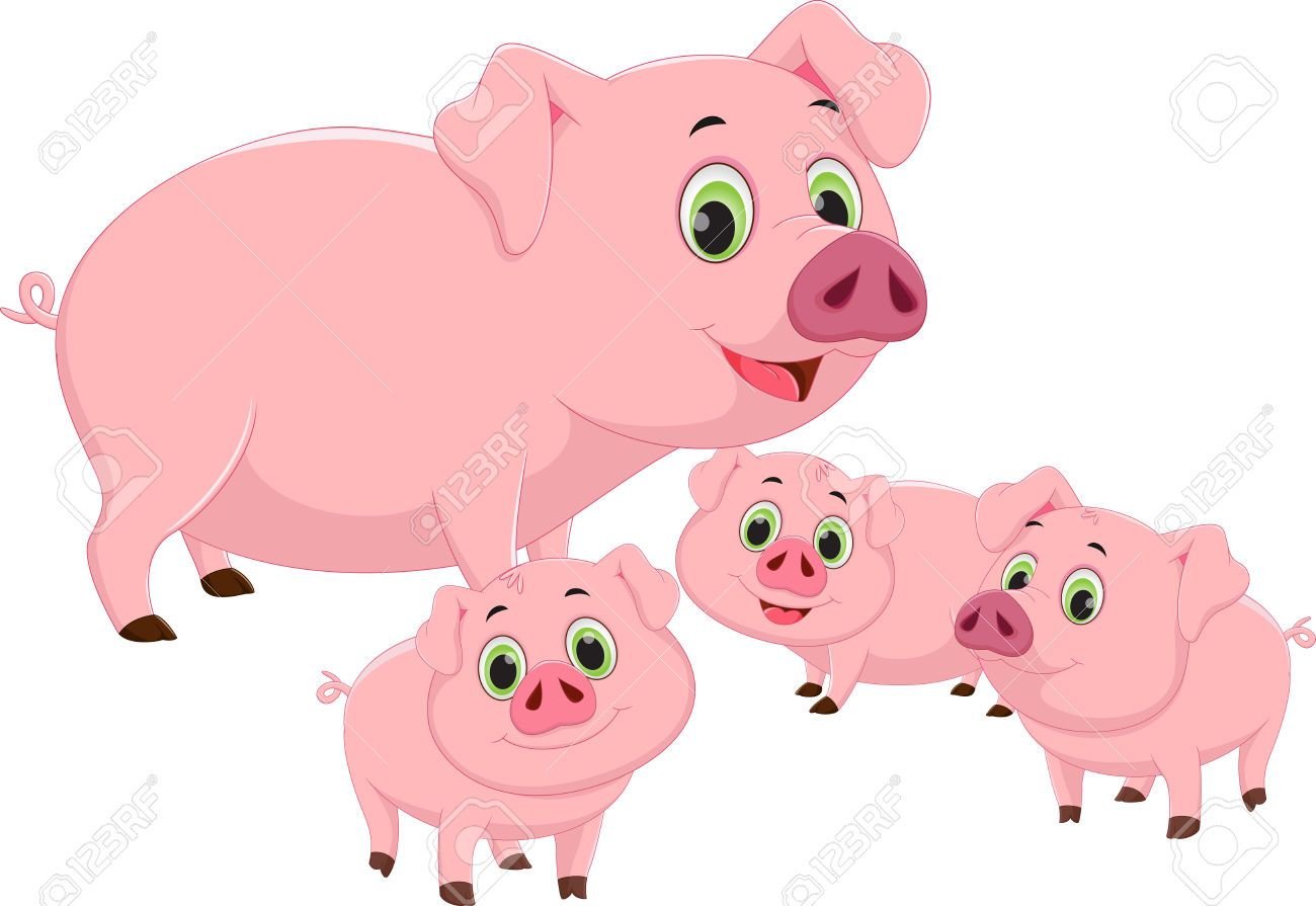 Свинья с поросятами мультяшная