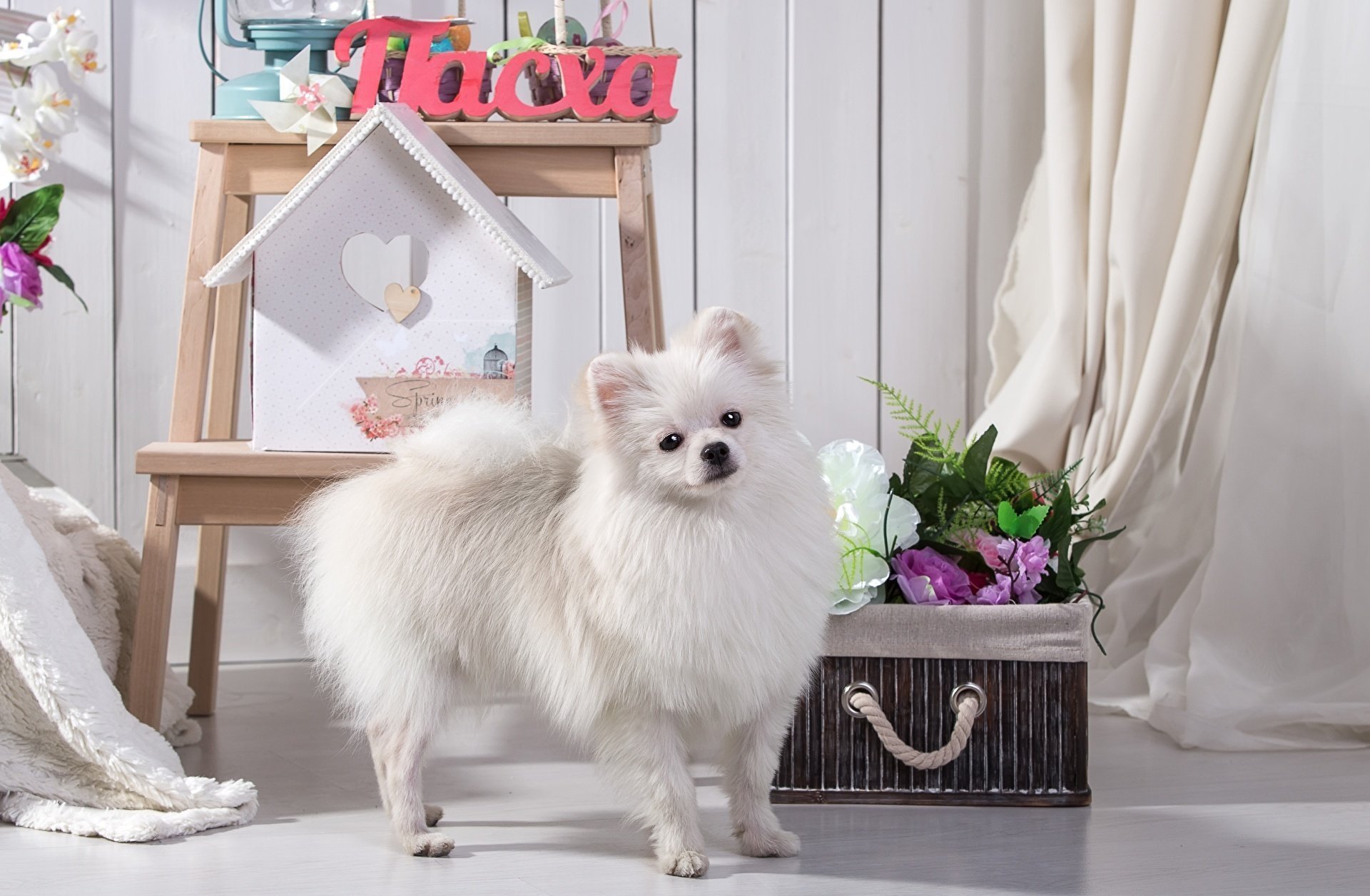 Померанский шпиц белый милый