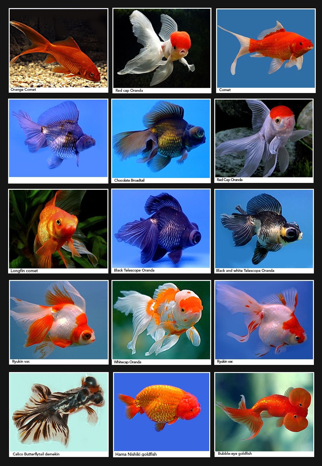 Разновидности золотых рыбок