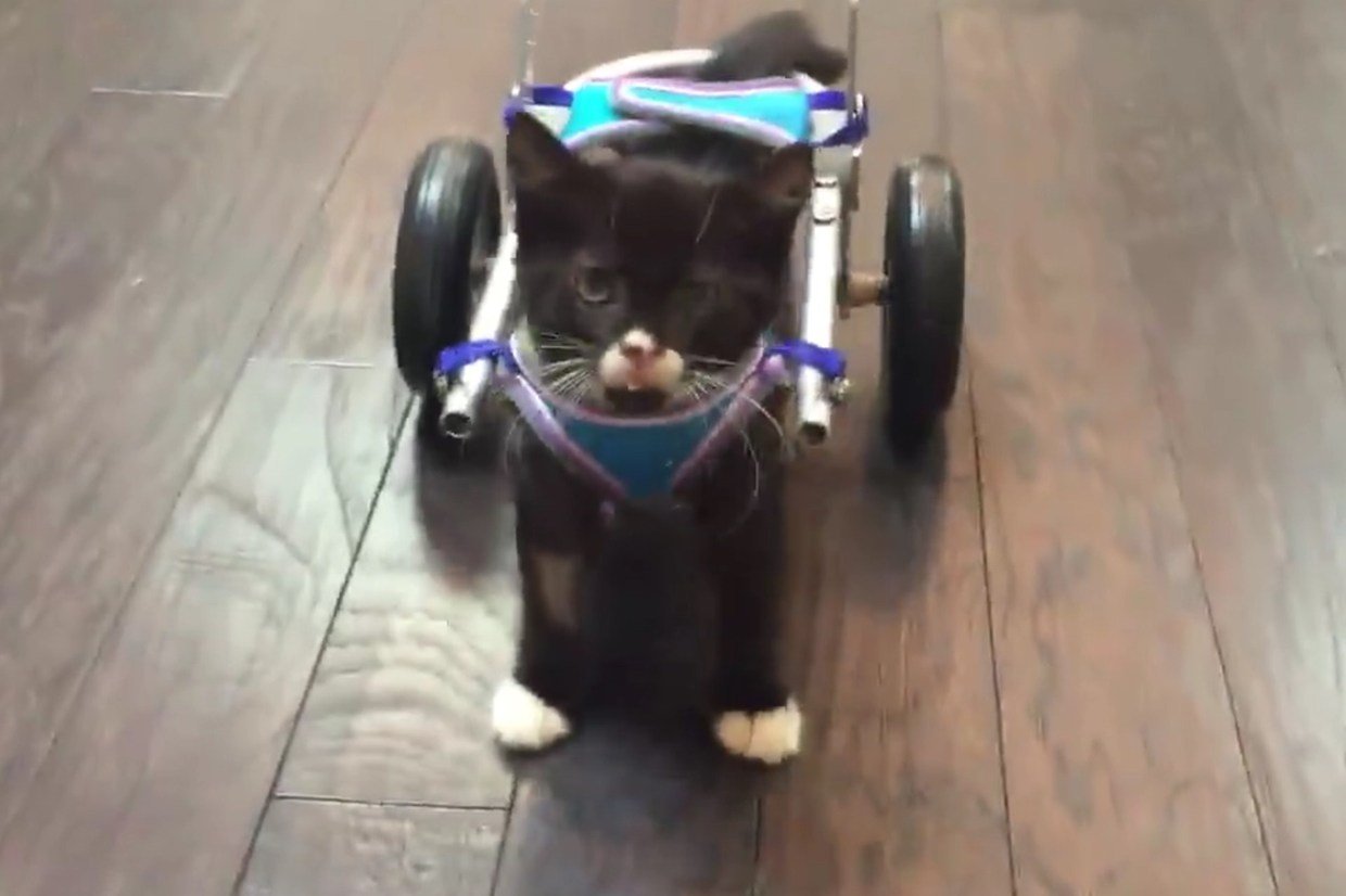 Котик на инвалидной коляске