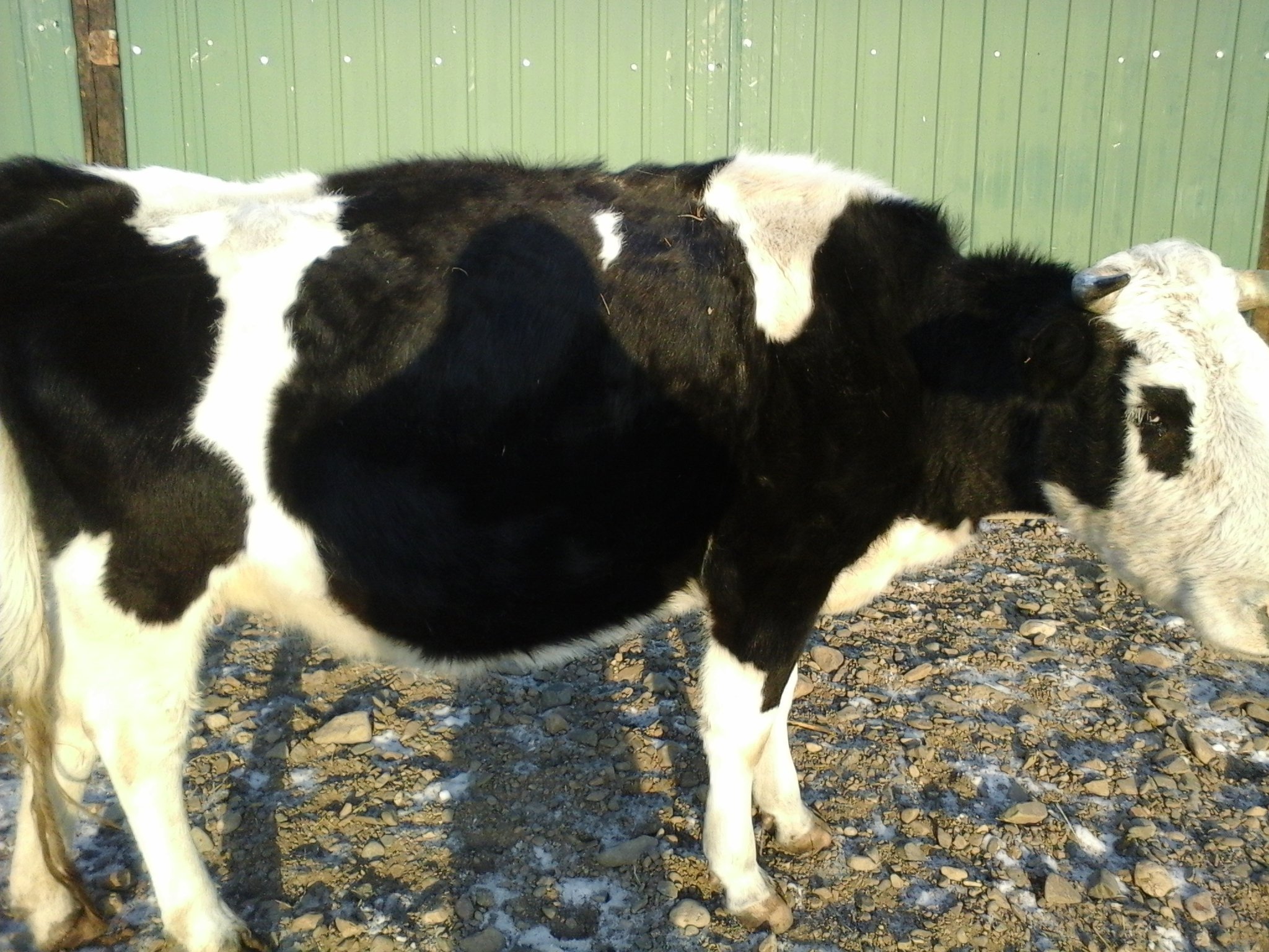 Корова черно-пестрой породы зимой