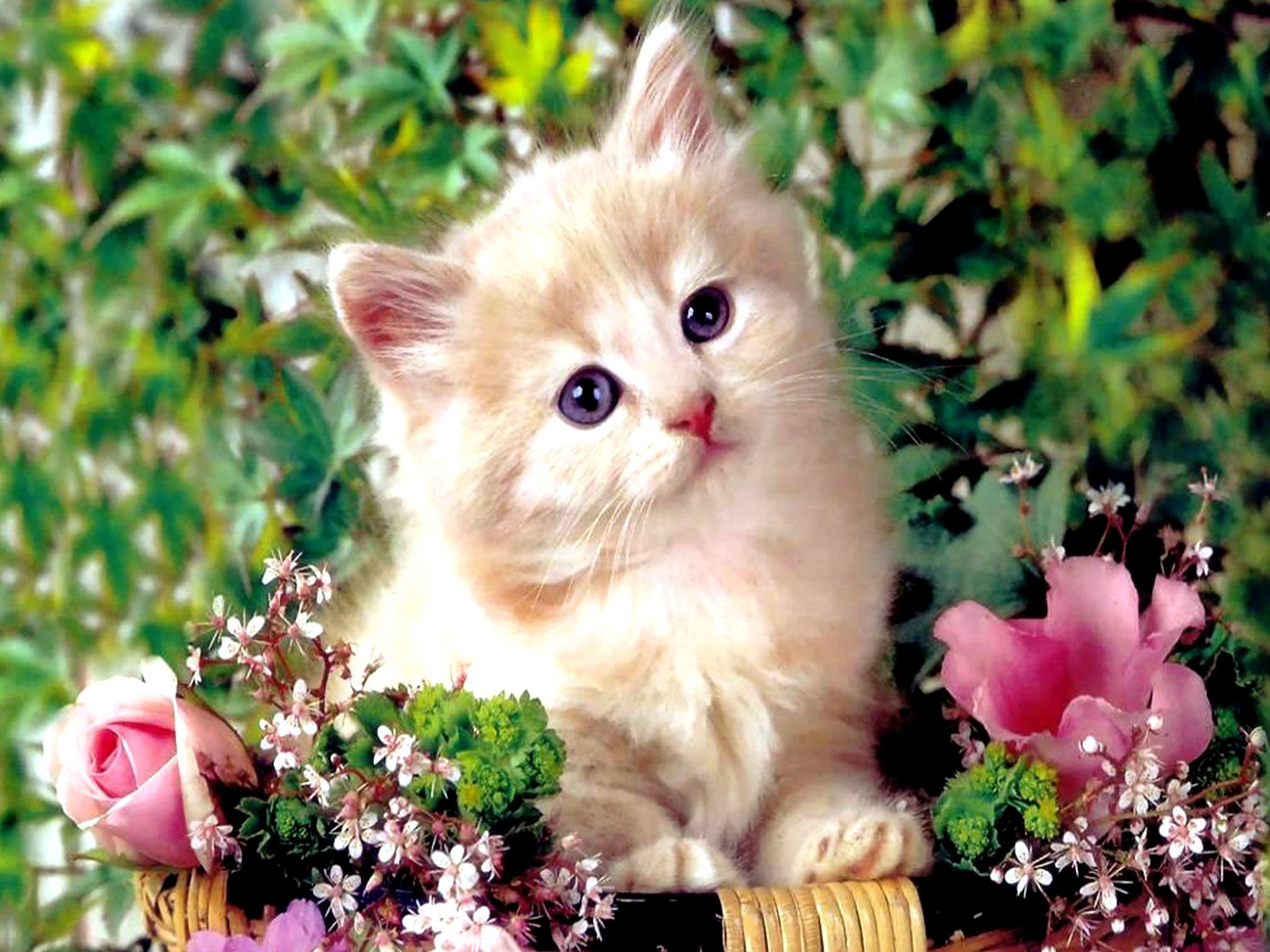 Котики на фоне цветов
