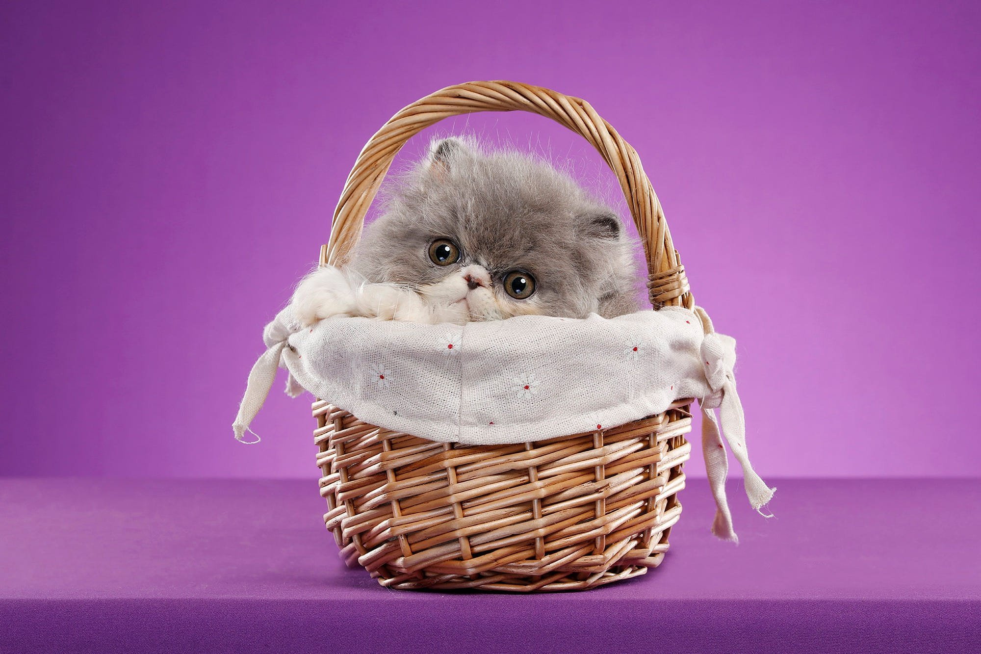 Белый котик в корзинке