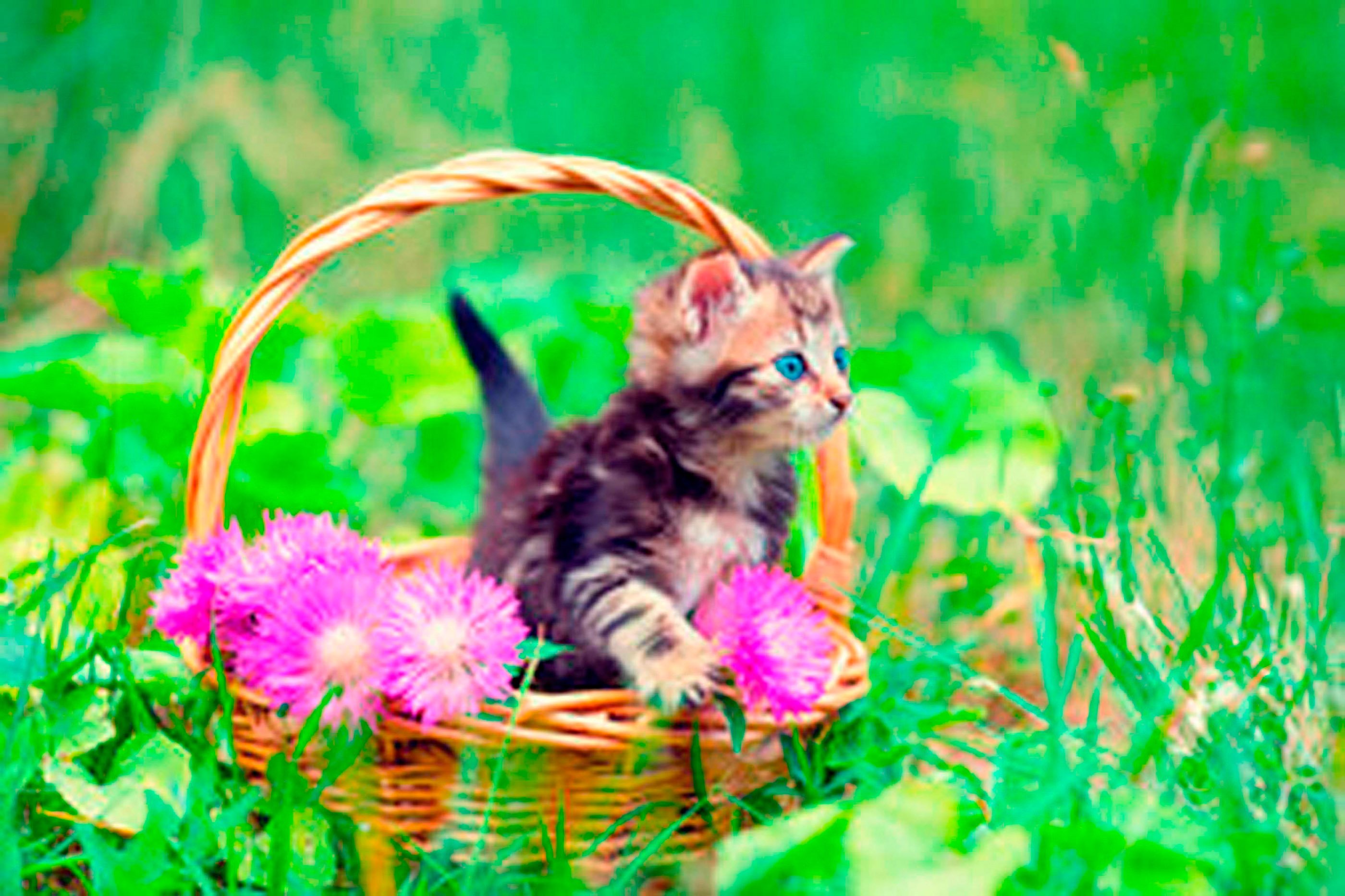 Котята корзинка цветы