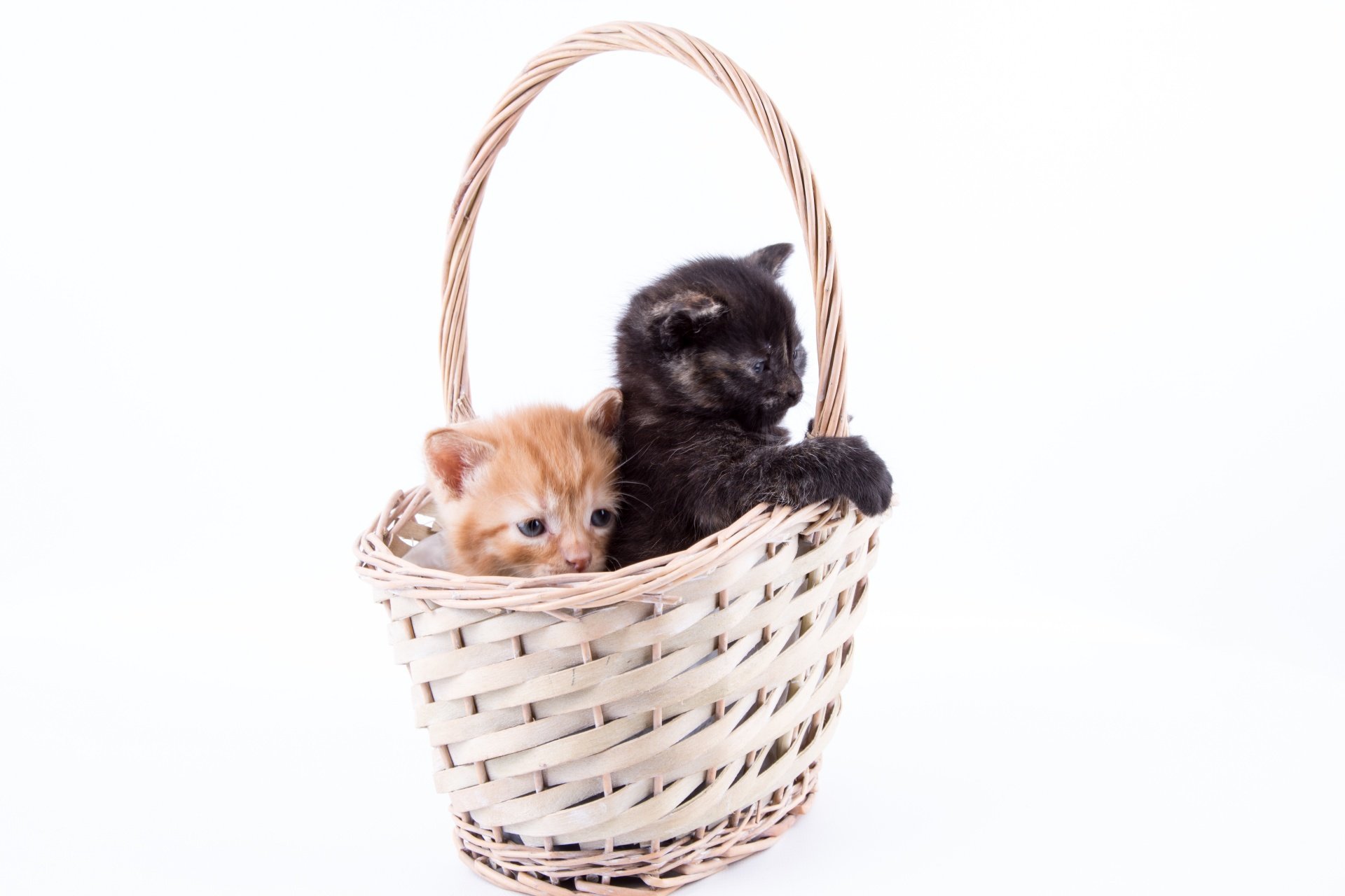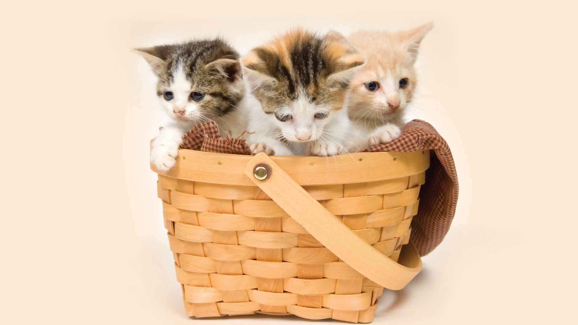 Кошки маленькие в корзинке