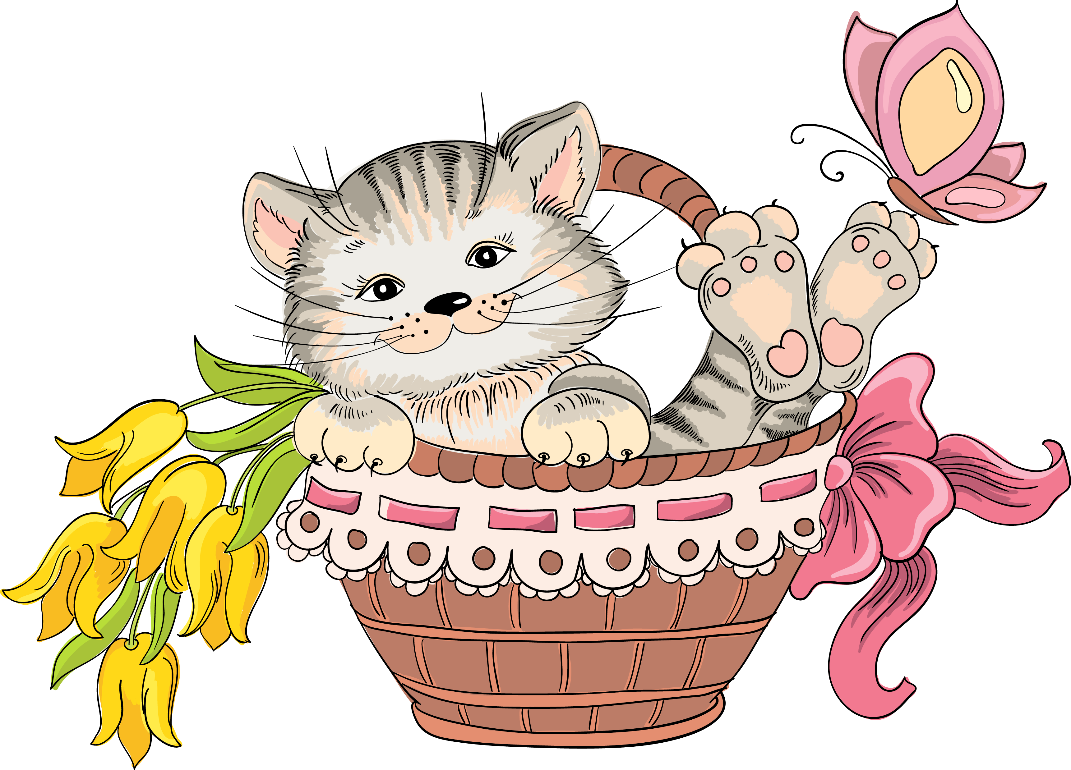 Котята в корзинке мультяшные