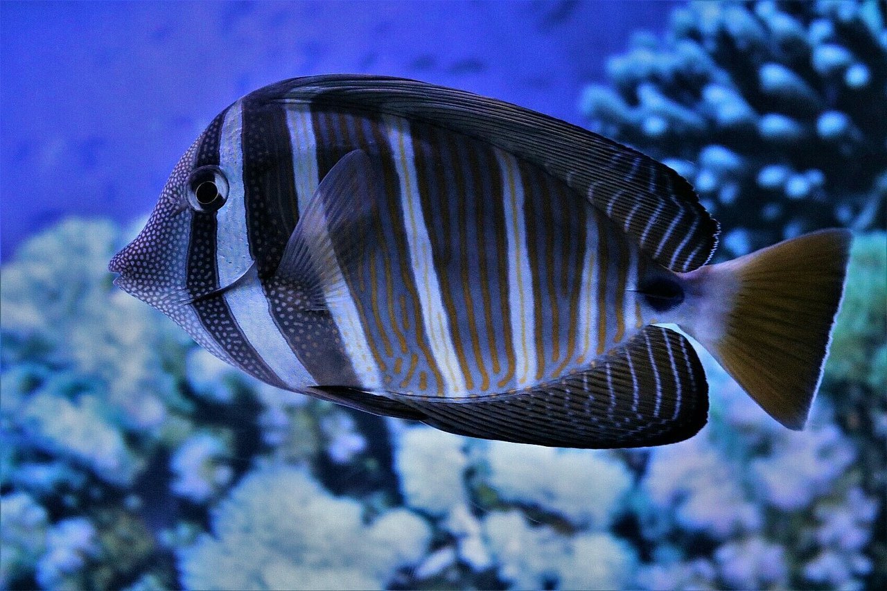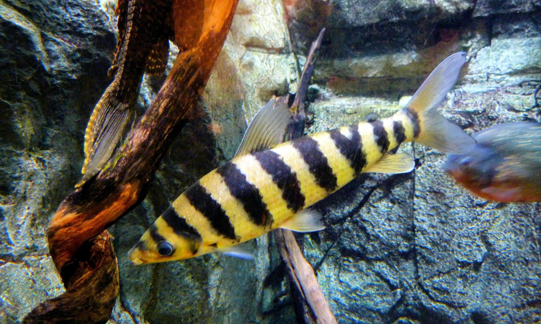 Длинная полосатая рыбка аквариумная