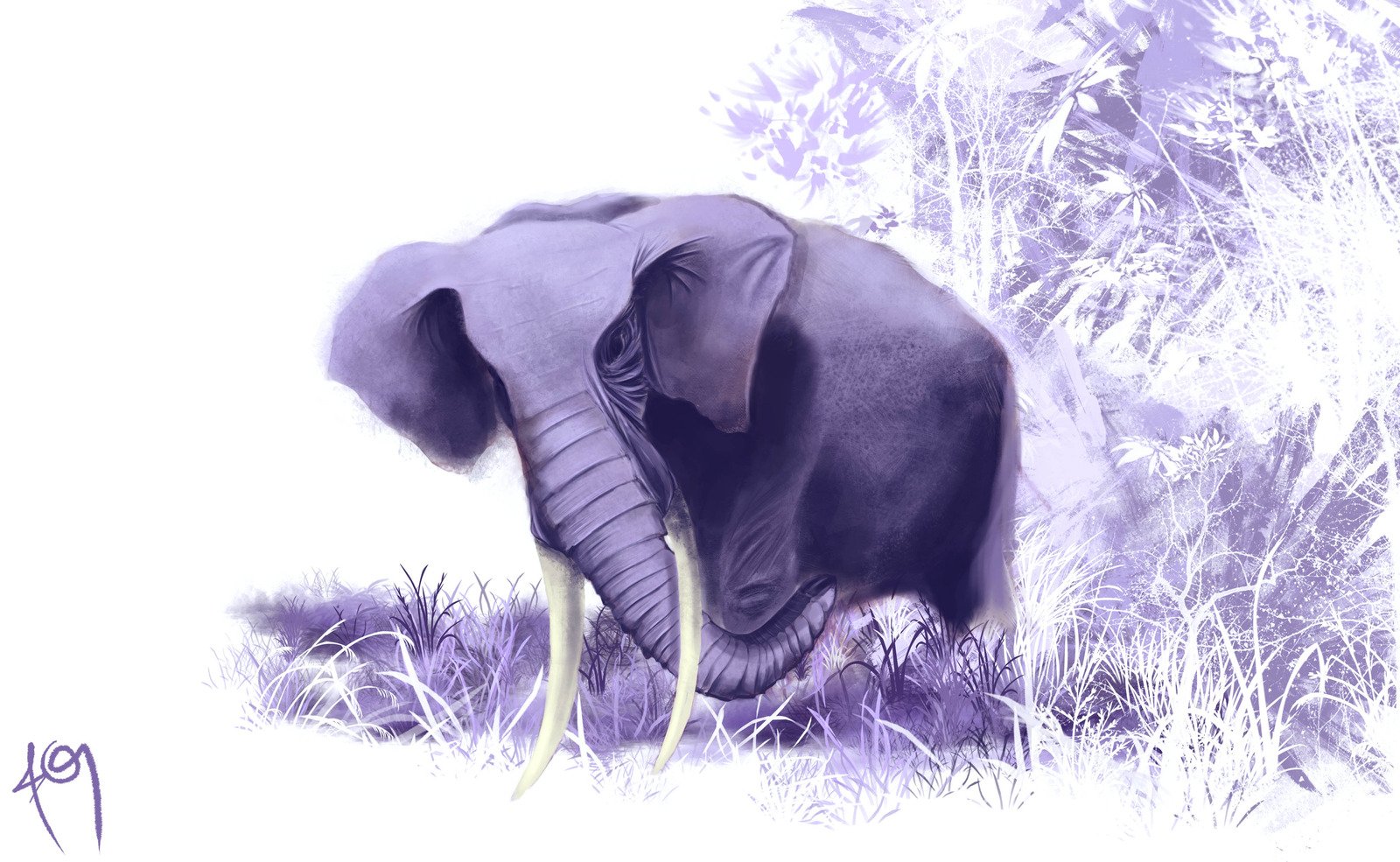 Картина слон на сиреневом фоне