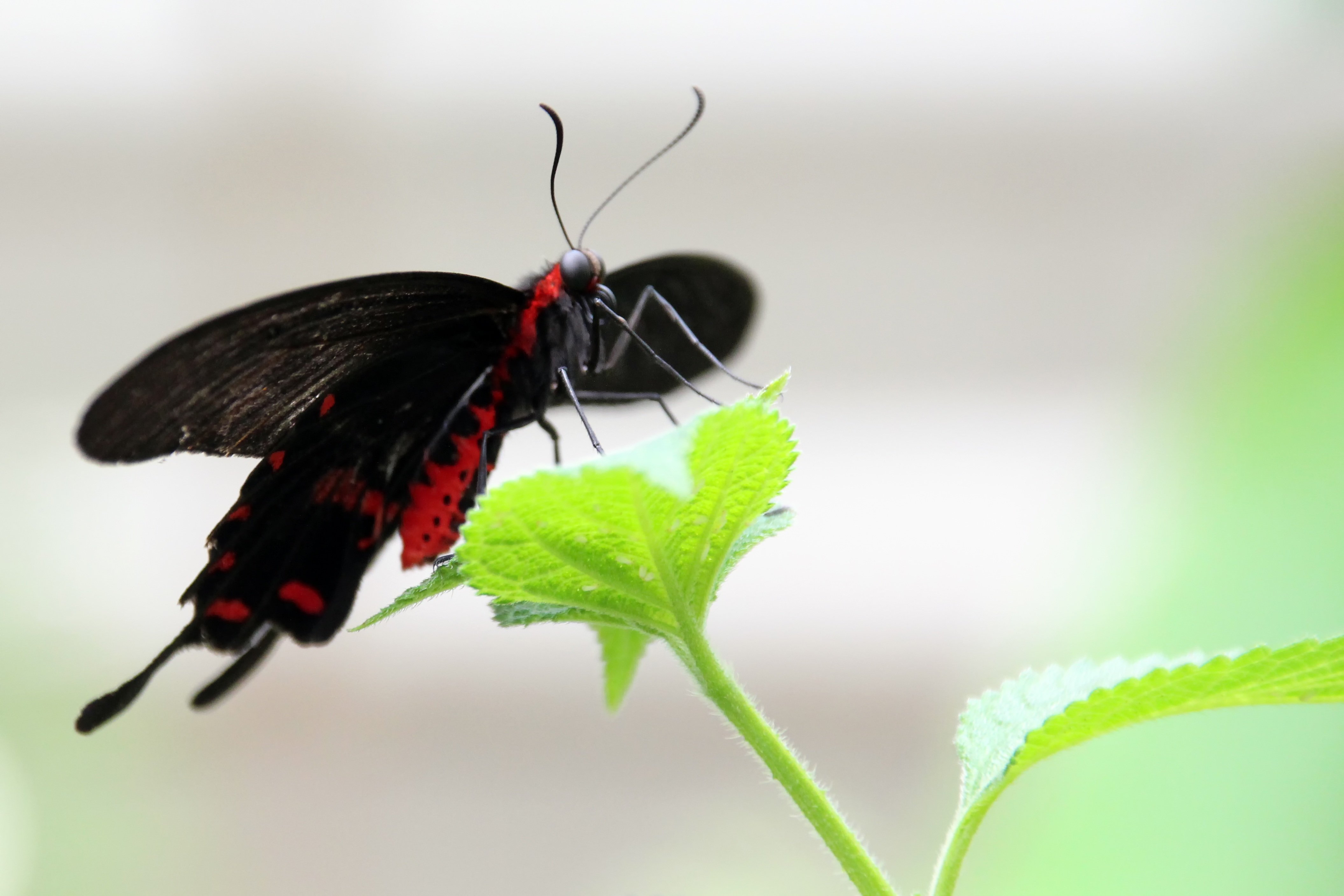 Бабочка черная с красными пятнами