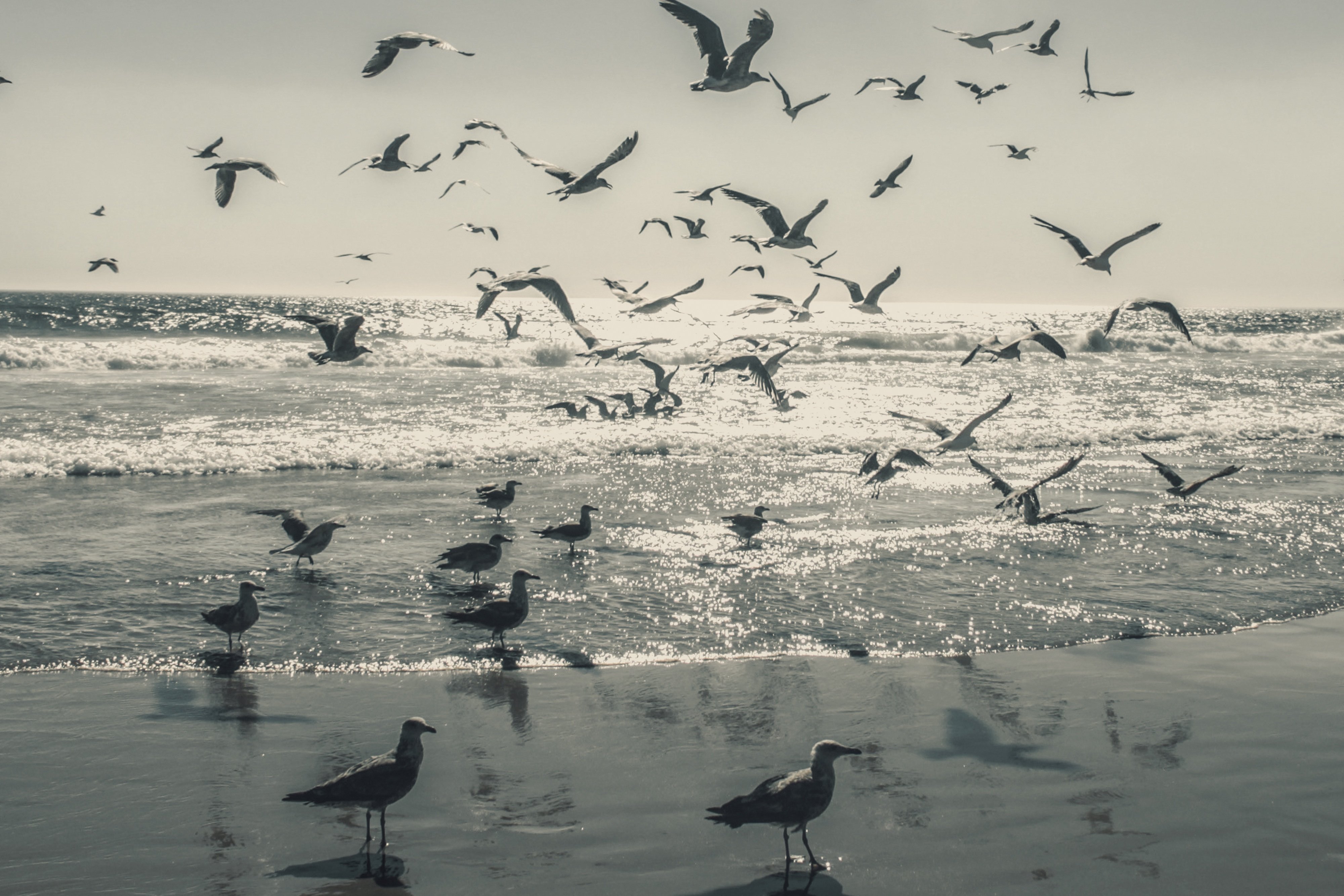 Стая птиц над морем