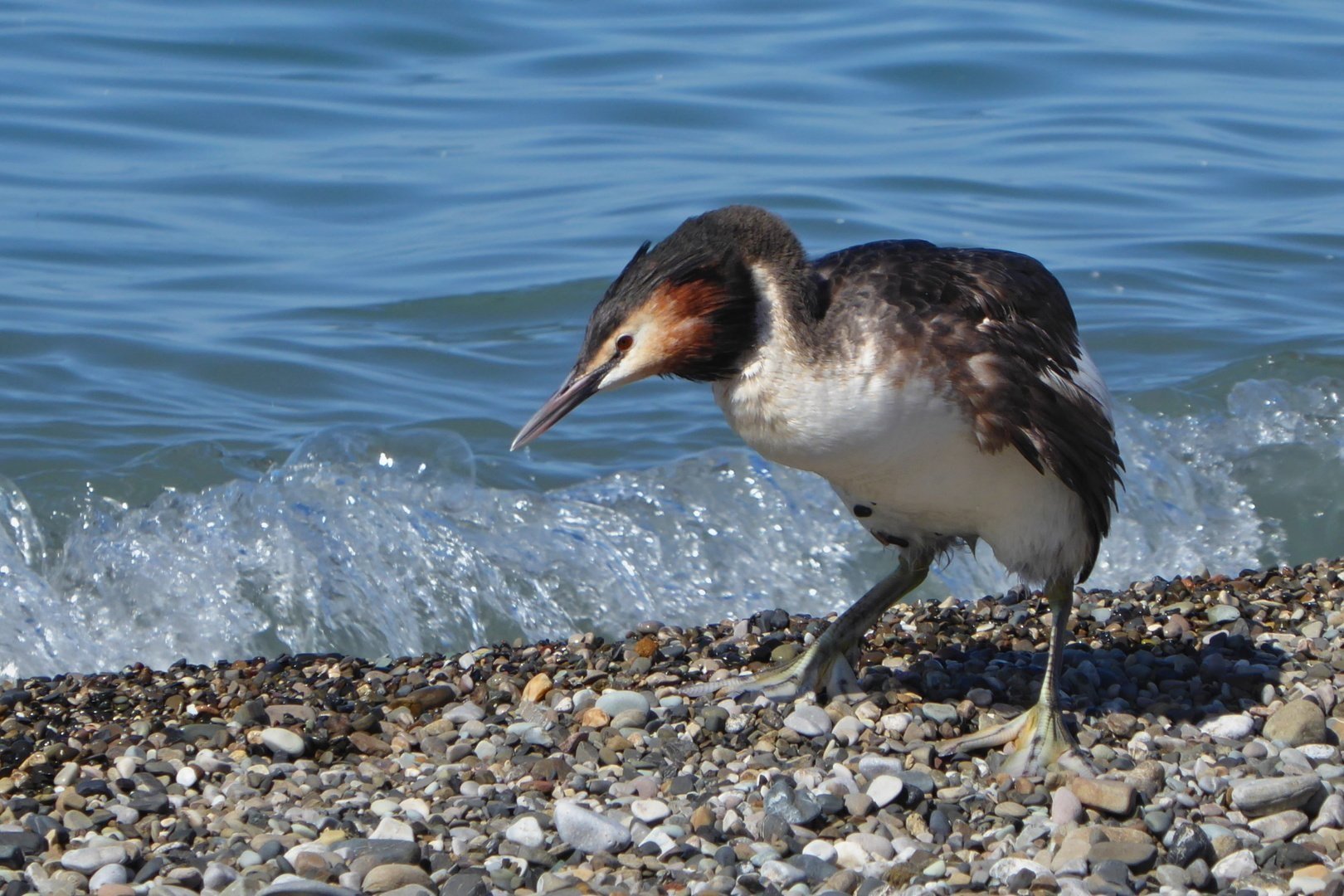Чомга водоплавающая птица Черноморского побережья