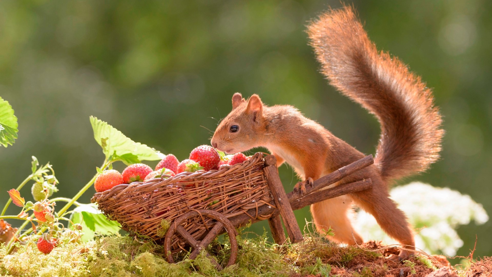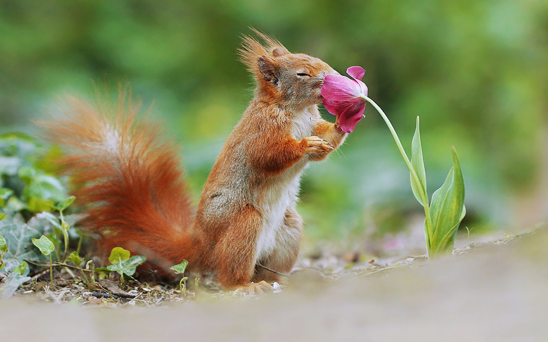 Белка с цветами