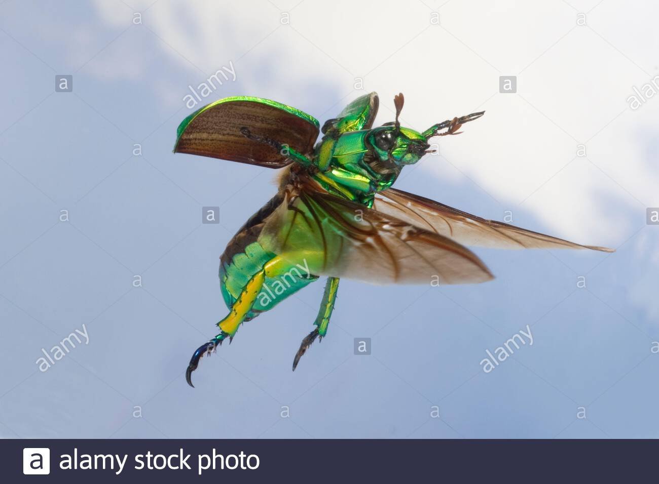 Жук Рогач зеленый в полёте