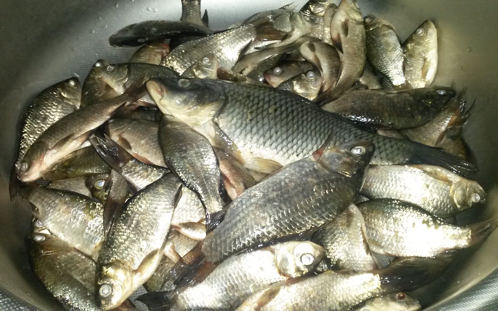 Крупный карась в ведре