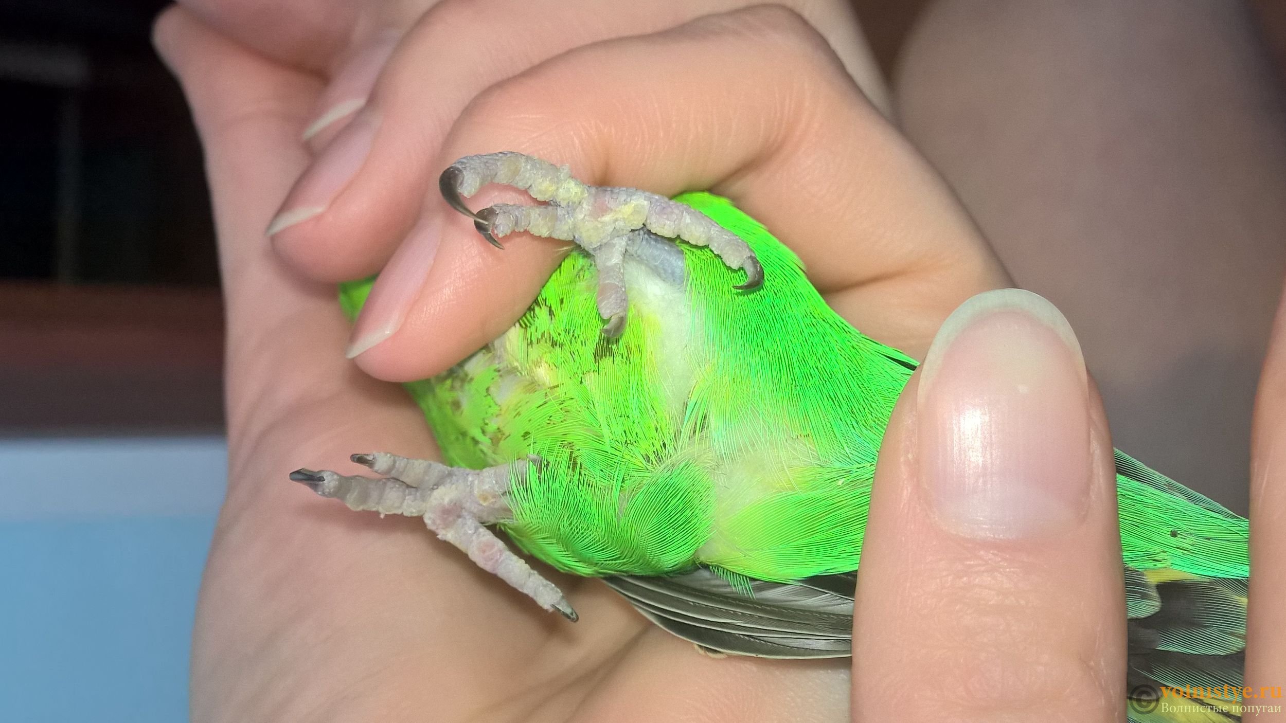 Синие лапки у волнистого попугая