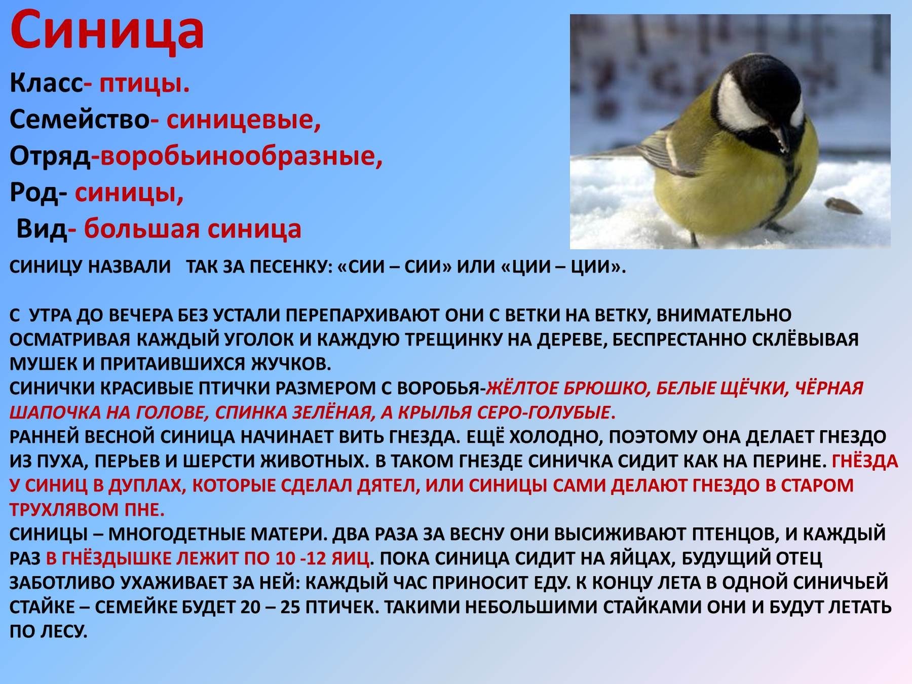 Характеристика большой синицы