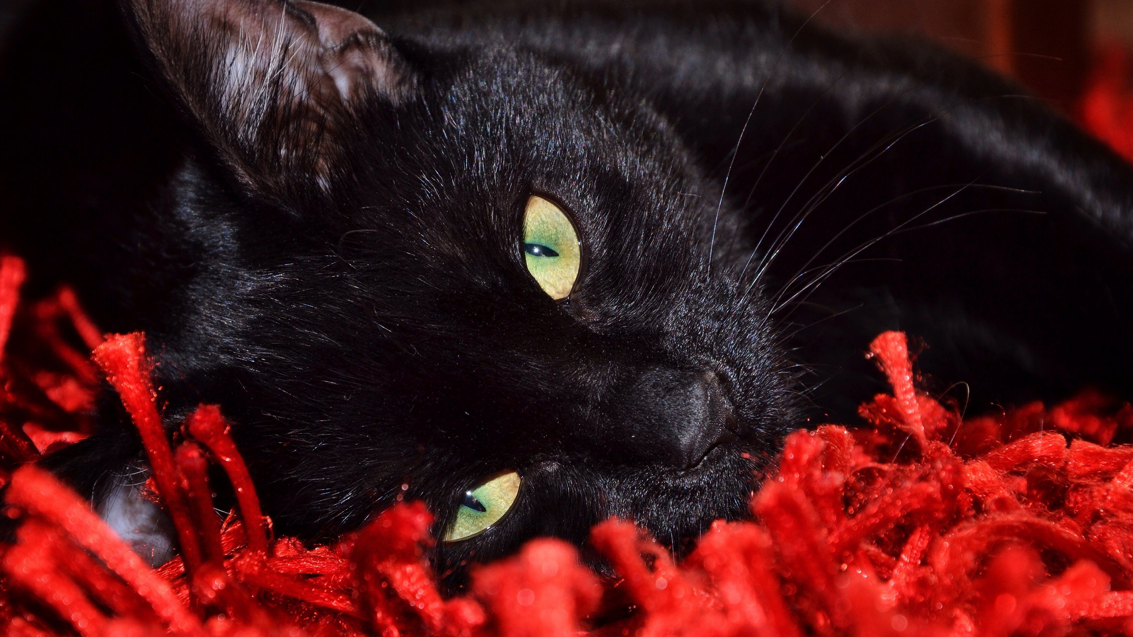 Чёрная кошка с красными глазами