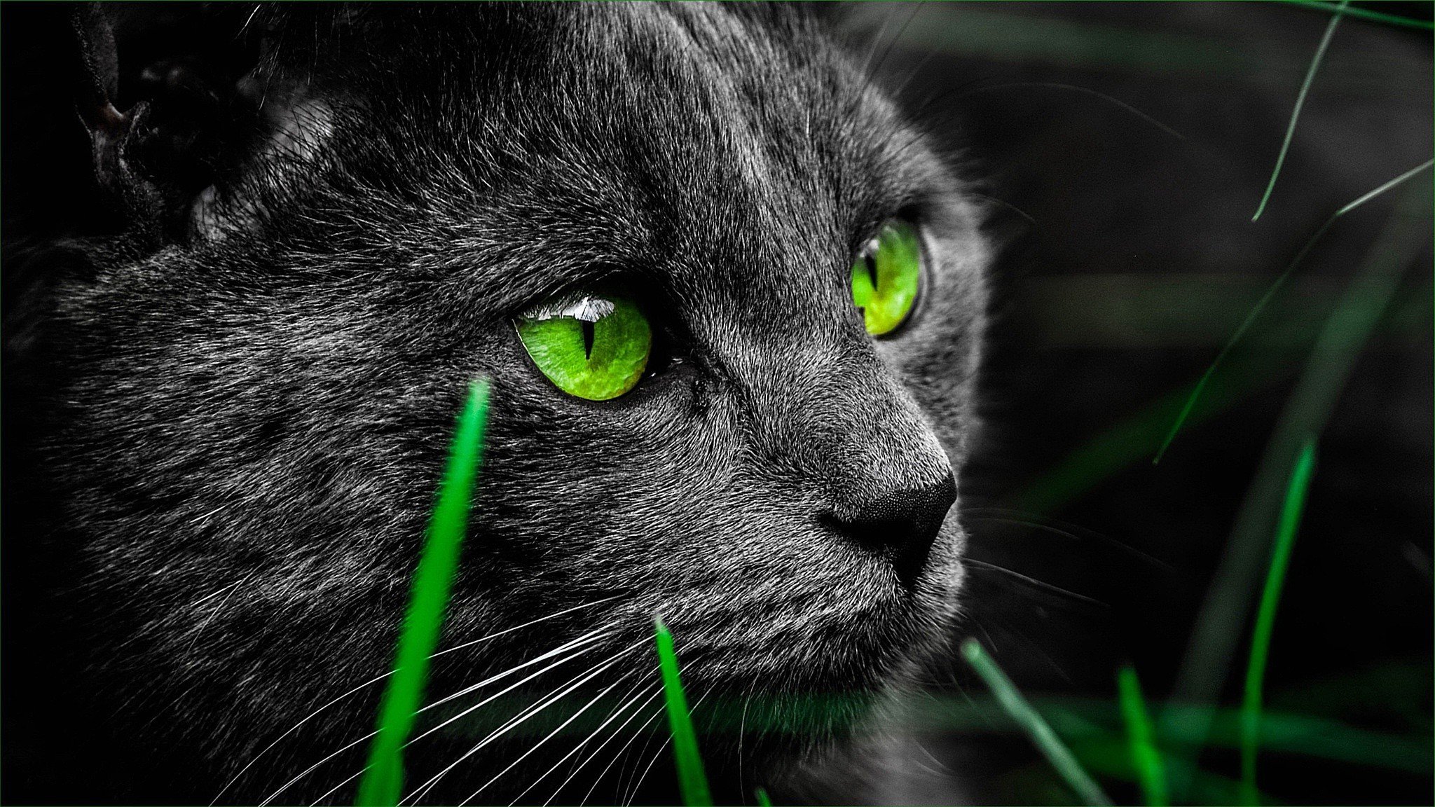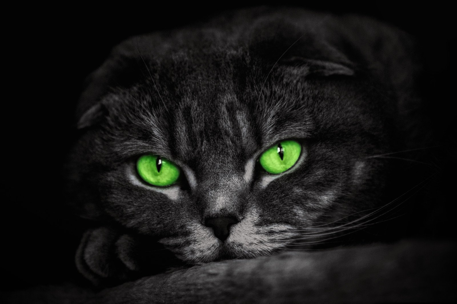 Чёрный кот с зелёными глазами