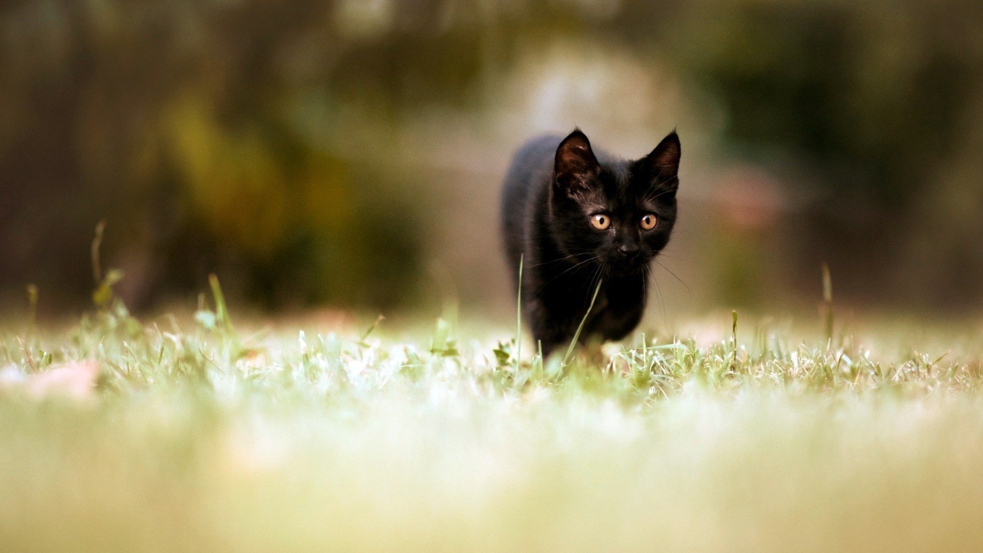 Обои на рабочий стол черная кошка