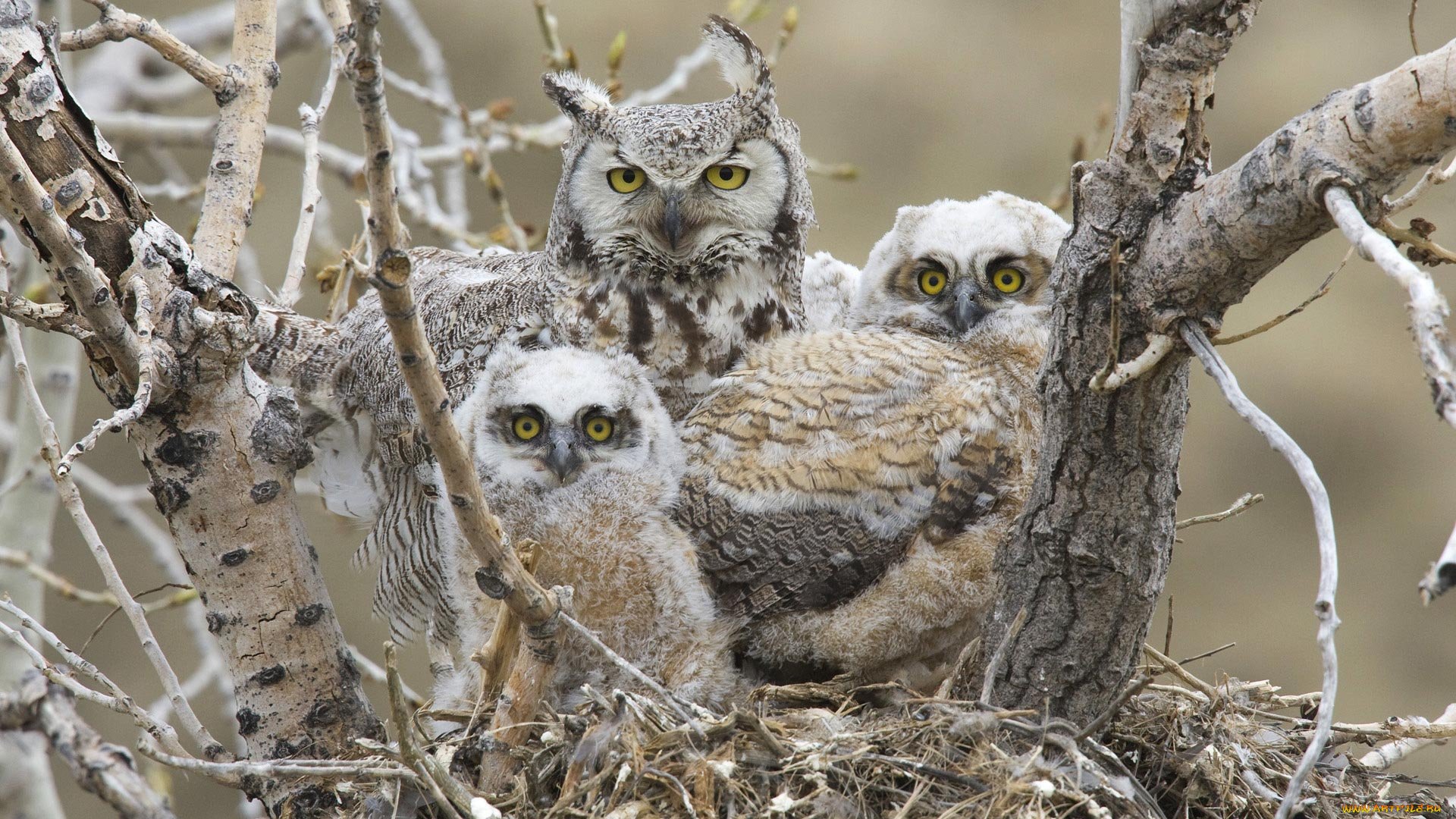 Сова с птенцами