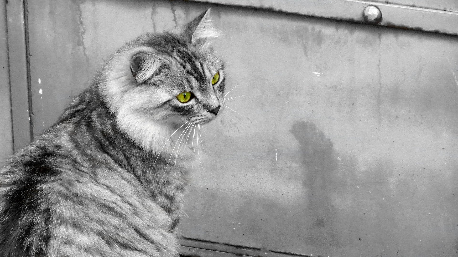Серый кот с зелеными глазами