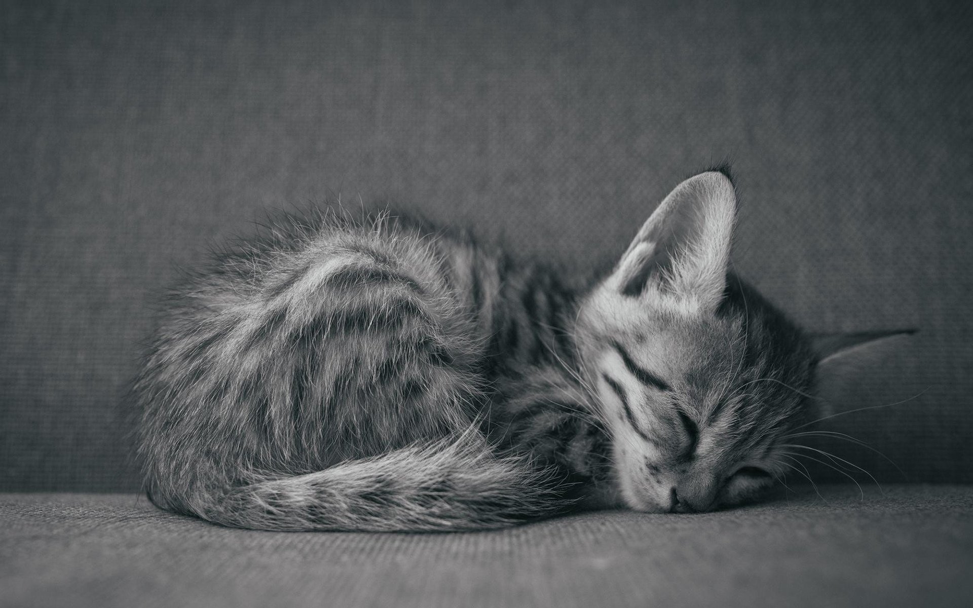 Спящий серый котенок