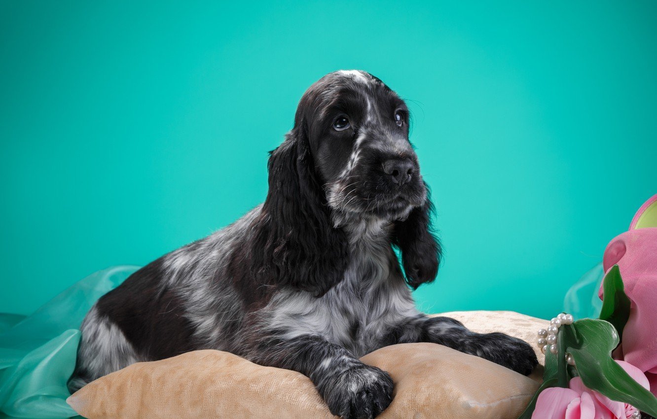 Собака английский кокер спаниель черно белый
