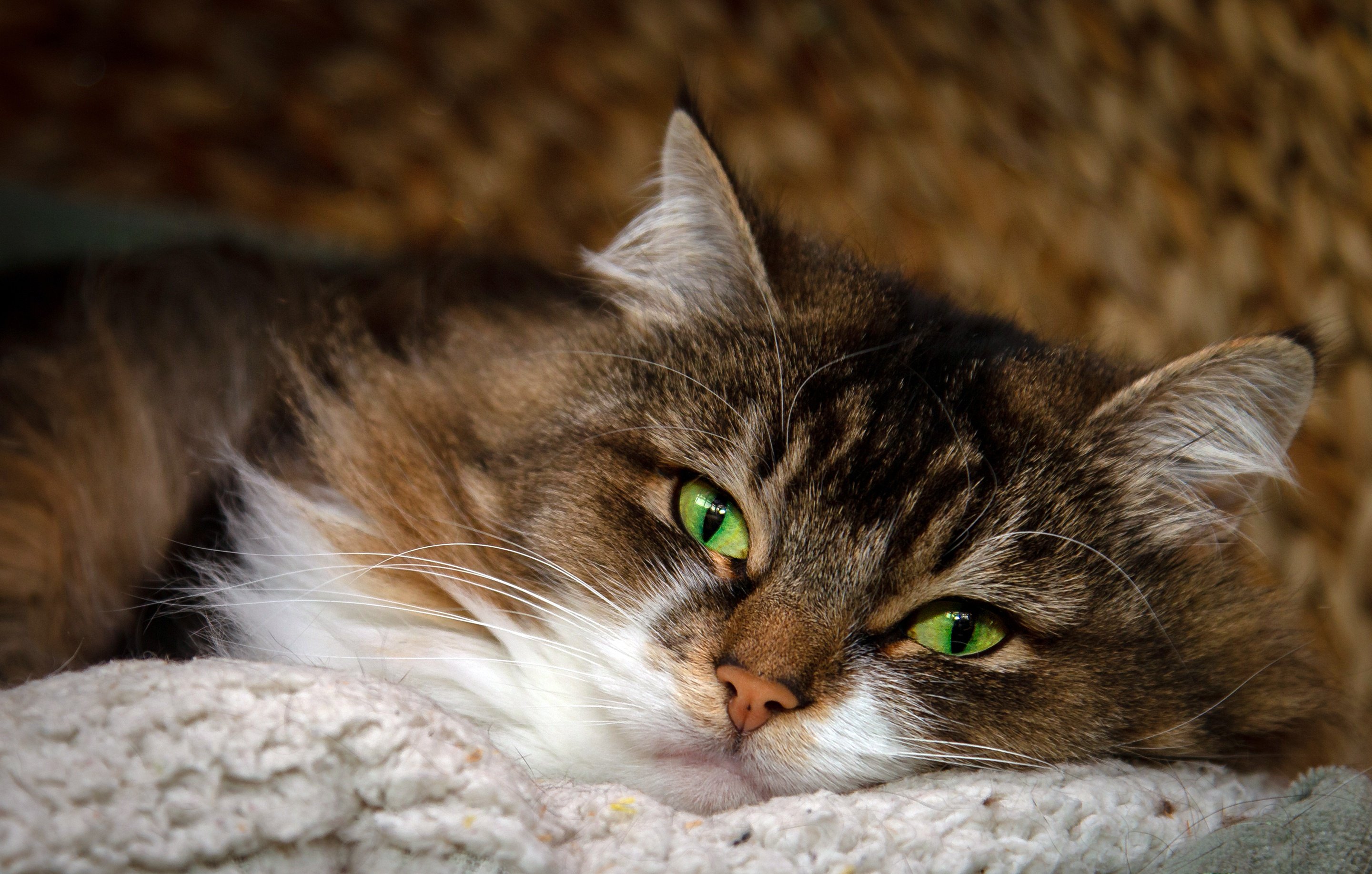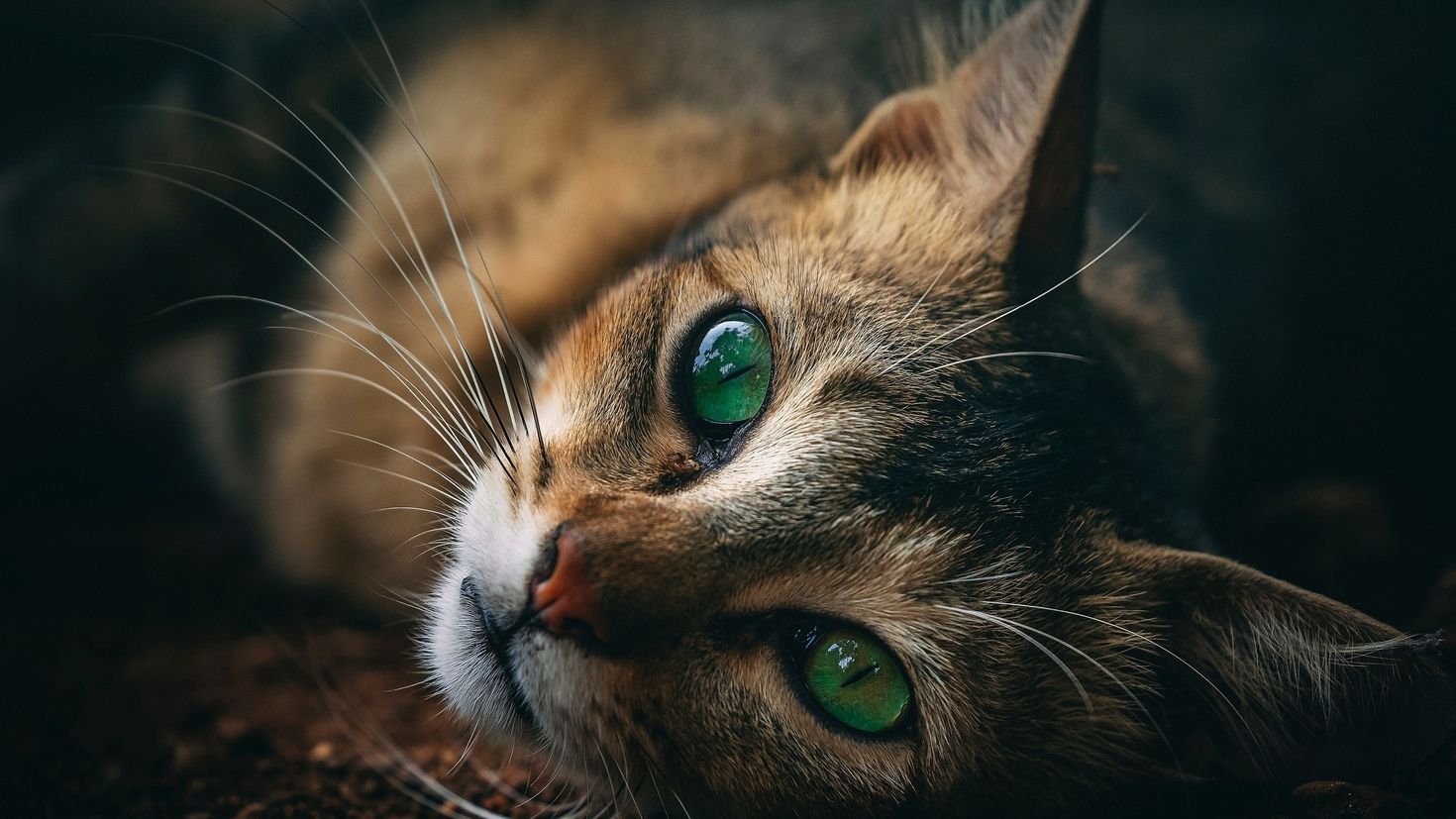 Коричневый кот с зелеными глазами