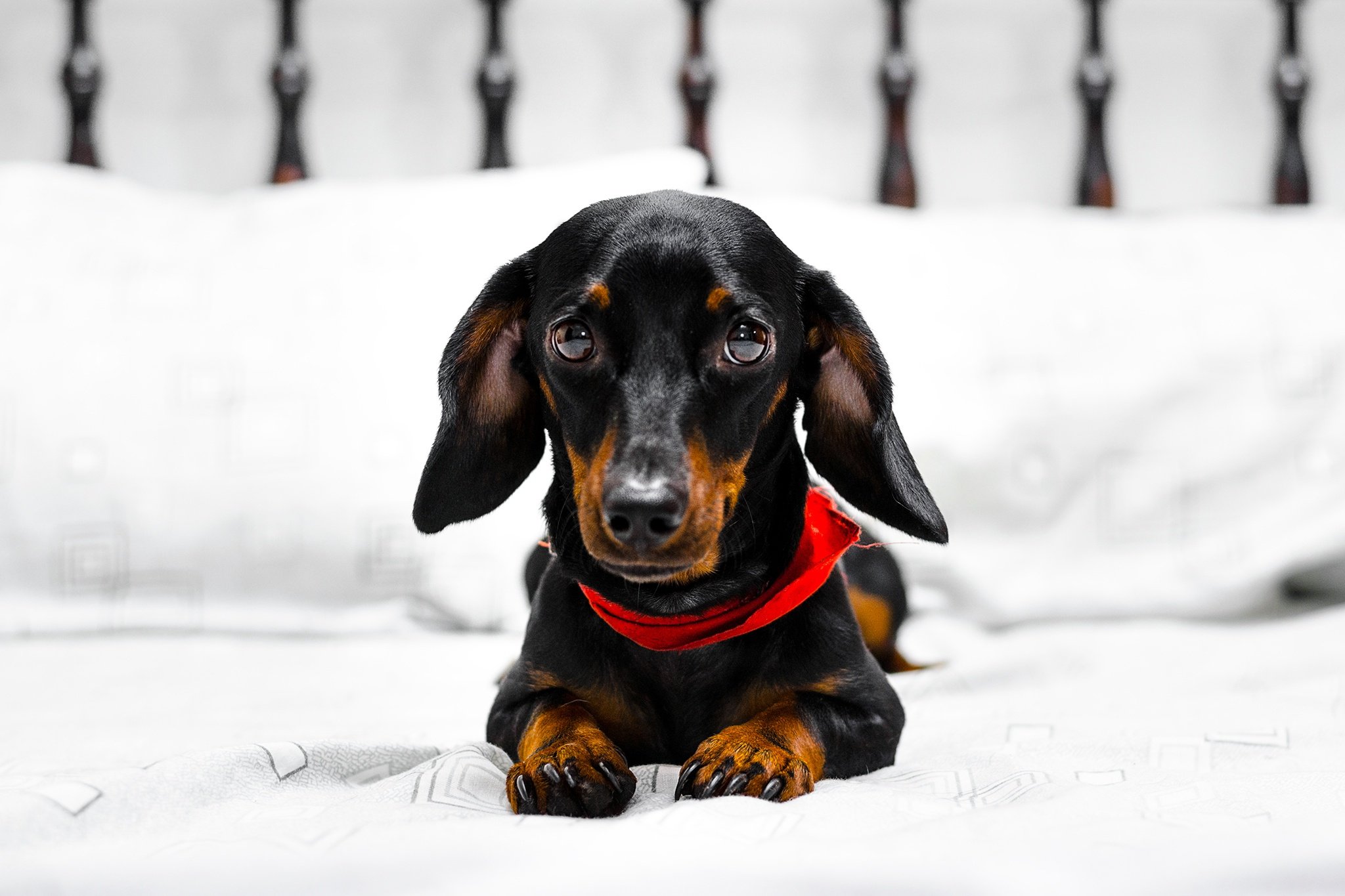Такса на белом фоне