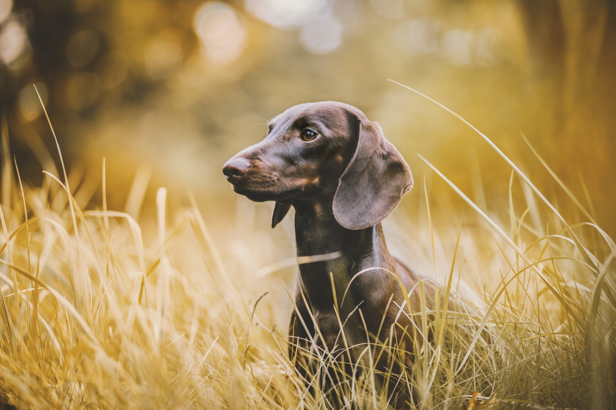 Такса коричневая на природе