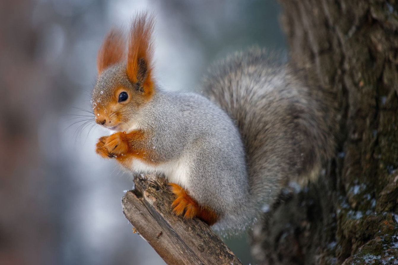 Белка с бельчатами зимой