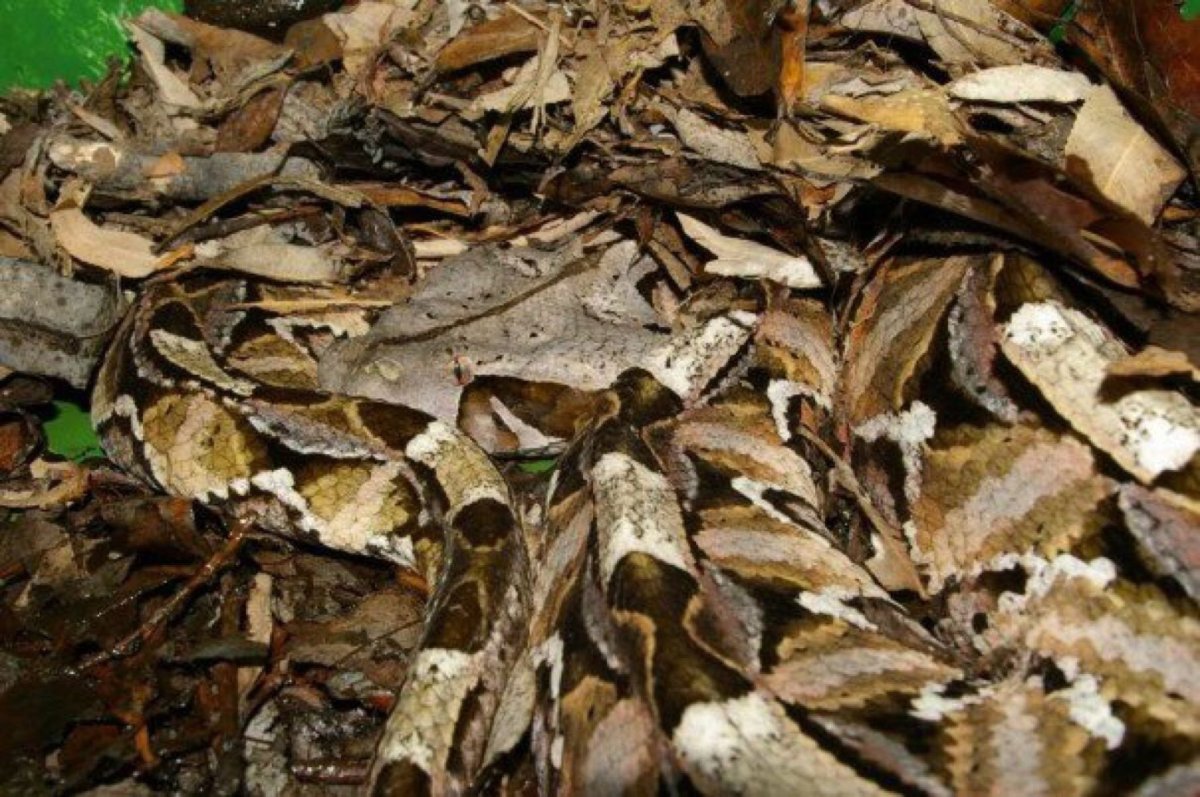 Габонская гадюка в листьях