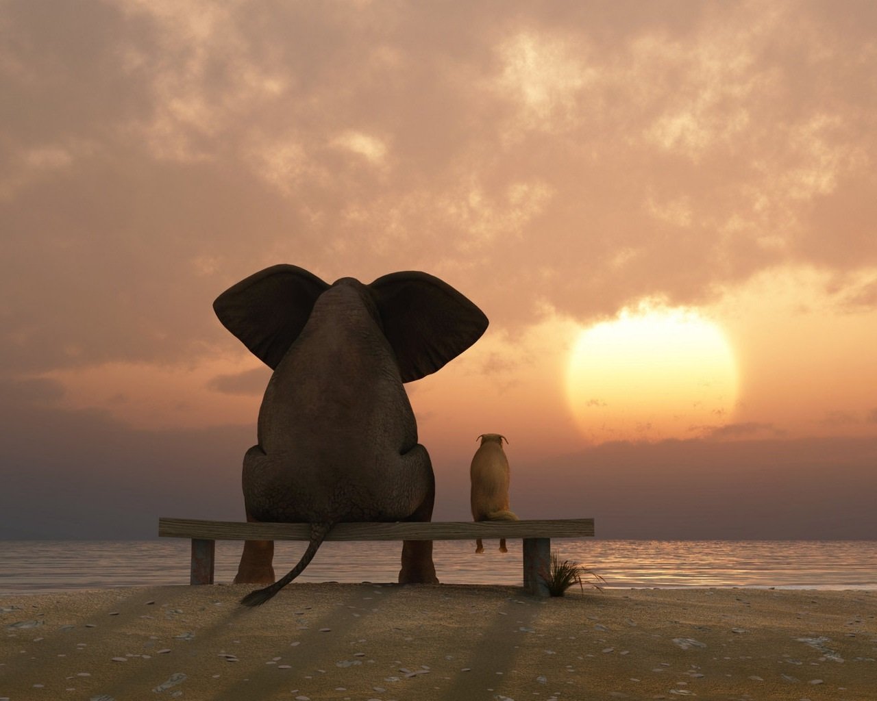 Слон сидит на лавочке