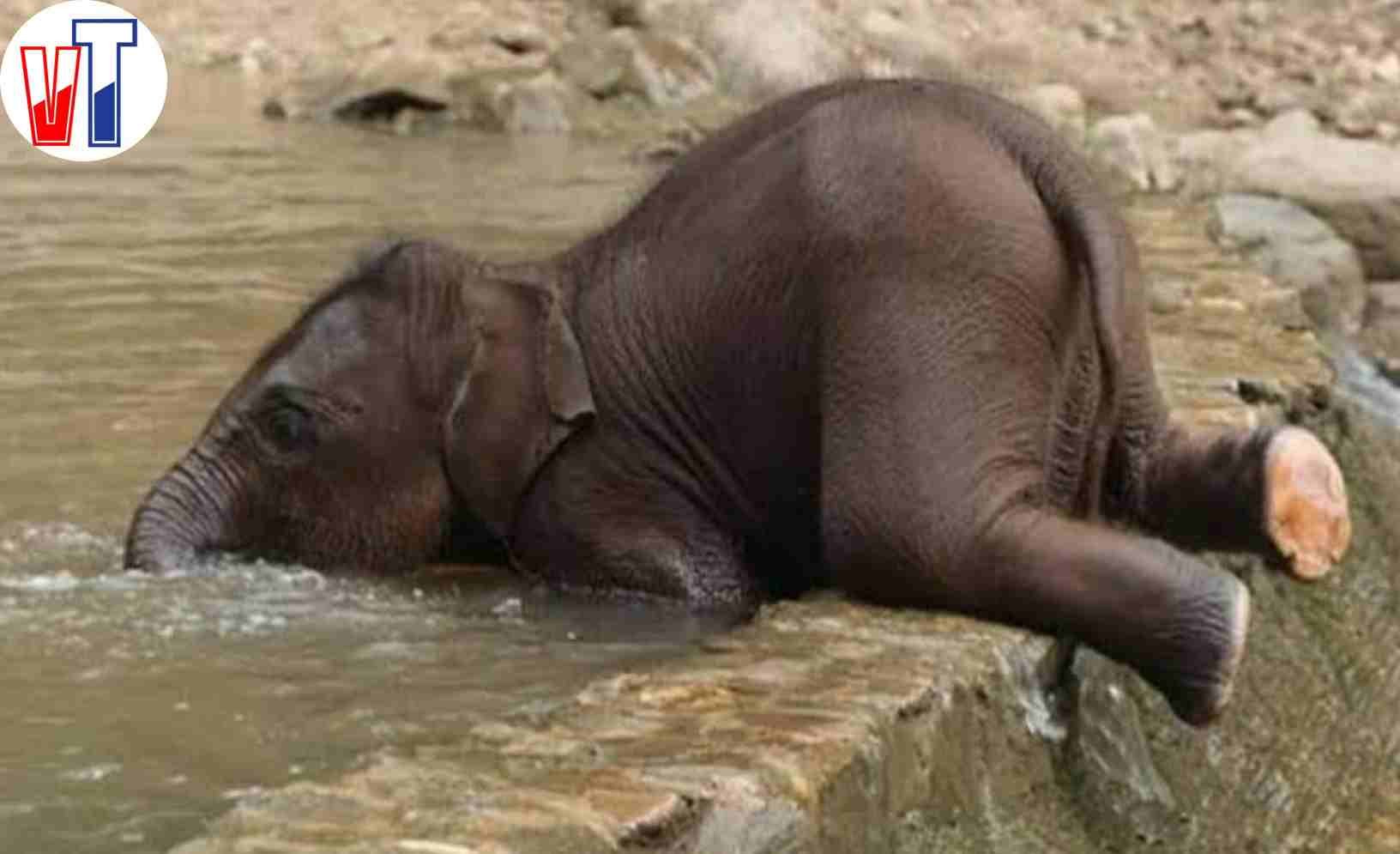 Слоненок купается