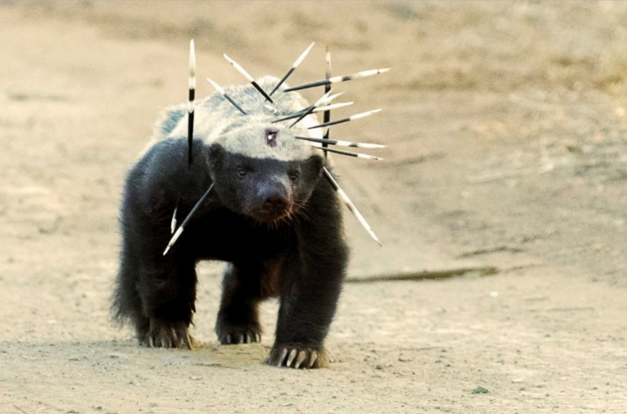 Медоед в иглах дикобраза